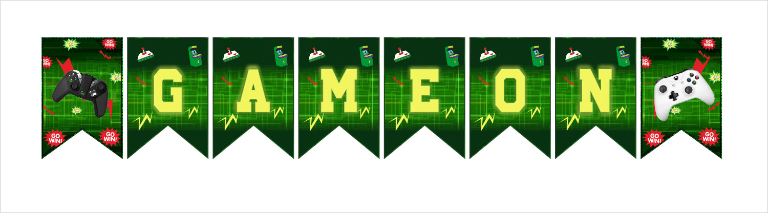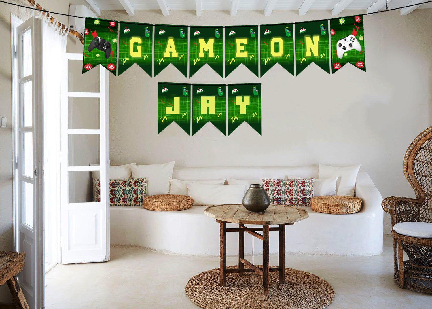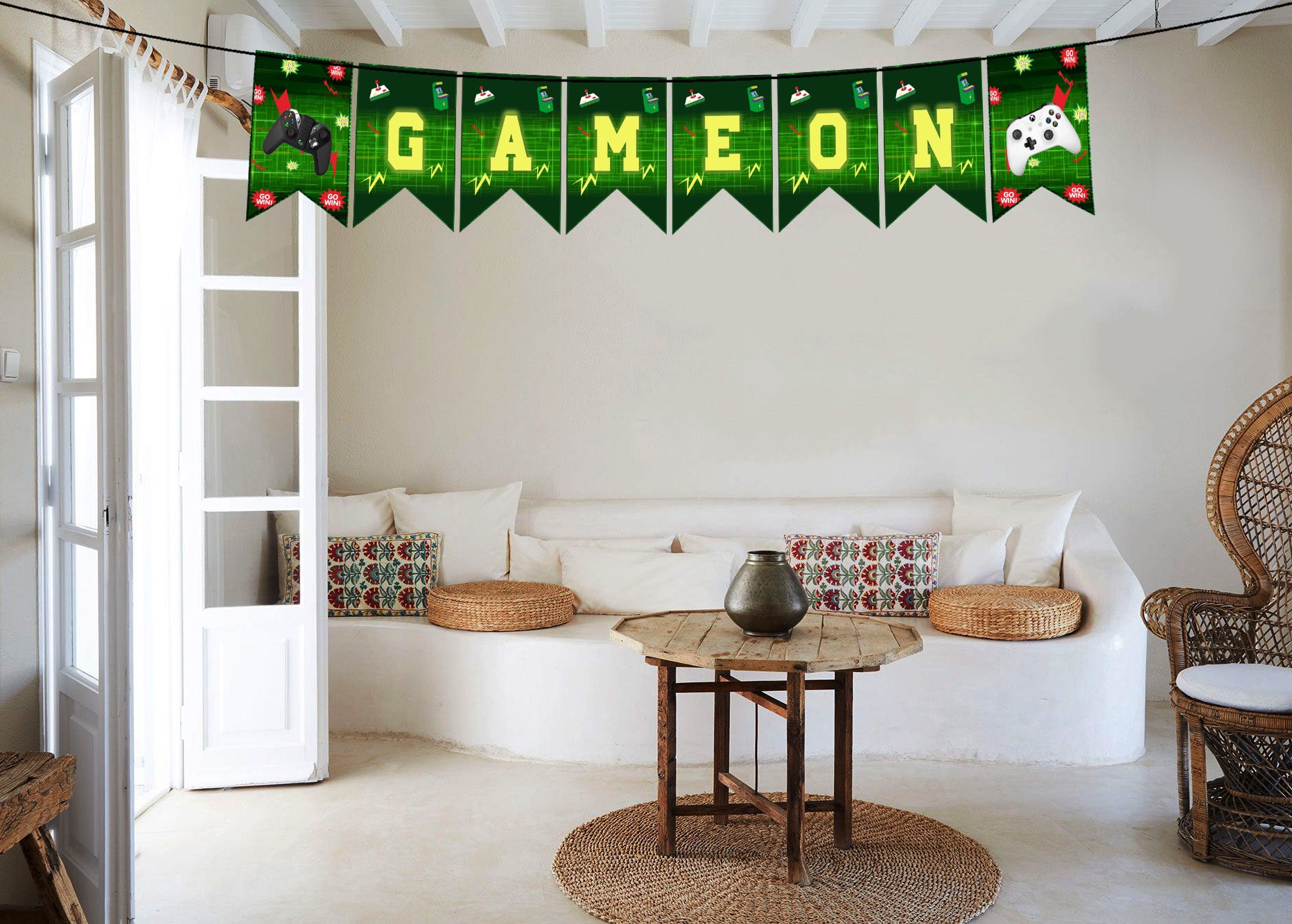 - Perfect Gaming Theme Party Banner Decoration - Looking for shiny and elegant Gaming party decorations? This Gaming banner is the ideal decoration for your Gaming party. The Gaming party banner will add a luxurious touch to your party and make your decorations awesome.