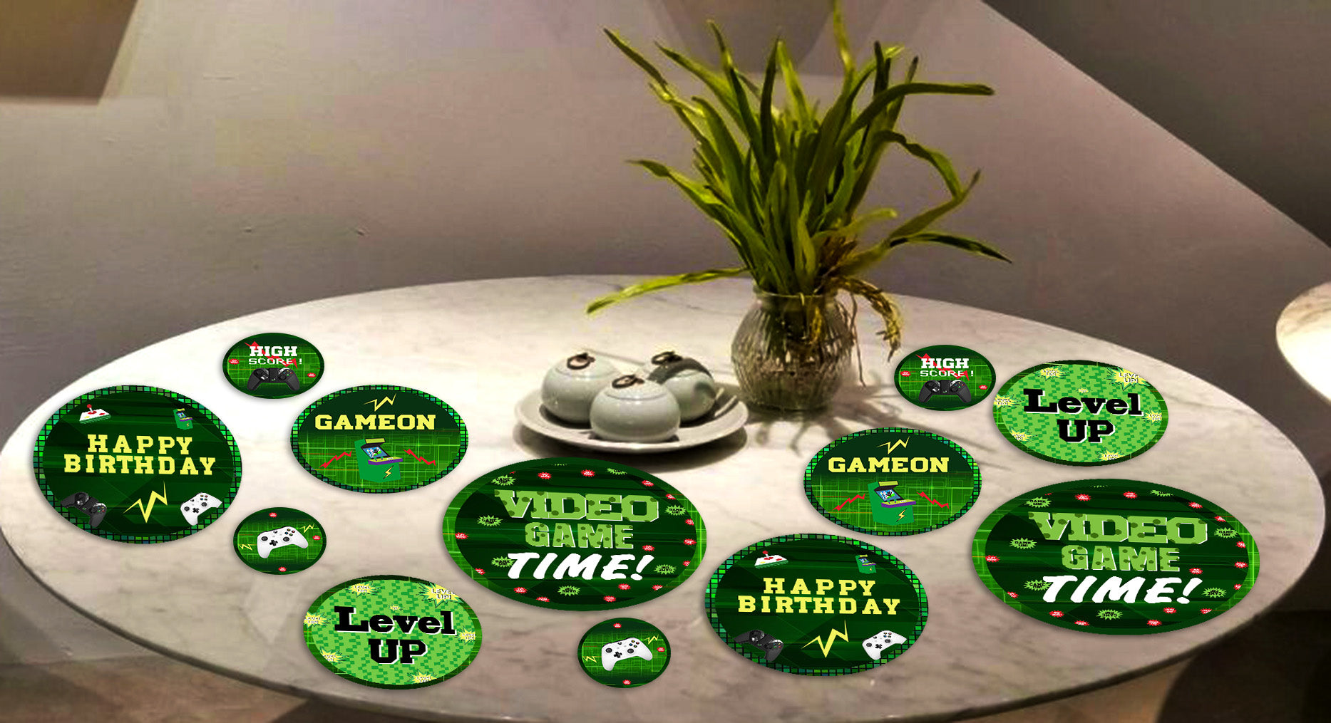 - Gaming Theme Birthday Party table confetti can be utilized or dispersed on the tables or hung together to make a pleasant banner. You can use them as Gaming Party Gift tags.