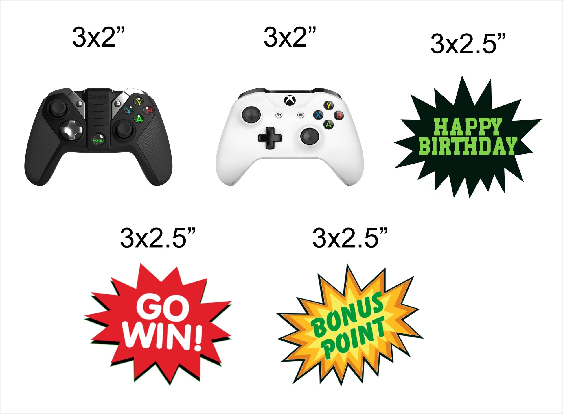 Include"Gaming Theme" cake toppers to your treat table. Add these 11 pieces to make an extraordinary theme cake show. Style the huge circle cake topper with the 2 huge picks in center Add 1 little pick to every one of the 10 cut out shapes to finish the cake embellishment. Get together tip: Plan the course of action before embedding completed cake topper pieces into the cake.