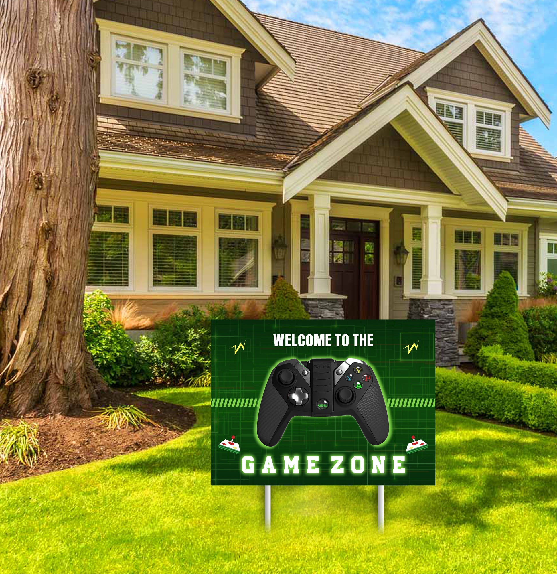 - The Gaming Birthday theme Welcome board sign is ideal for any home location or outside space. Welcome your friends and family members with a stunning welcome birthday party board.