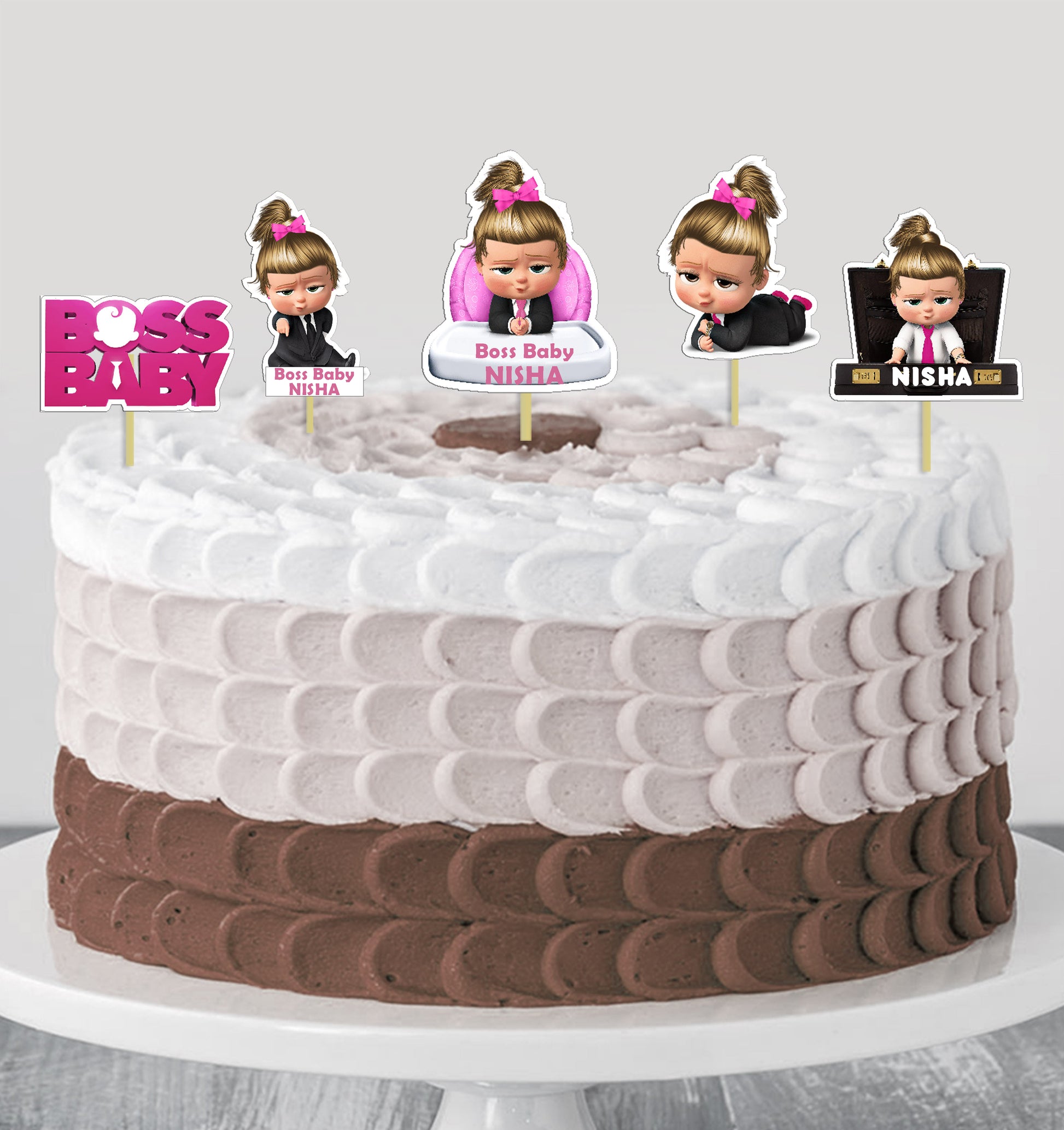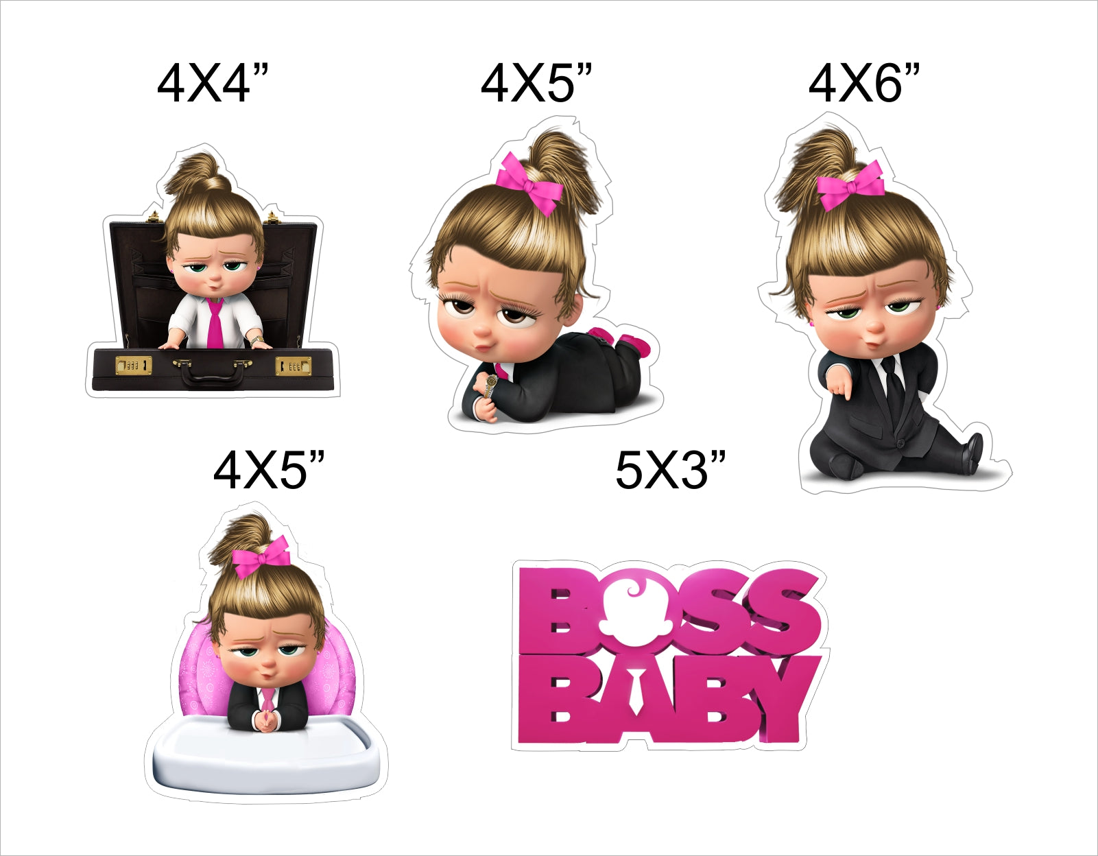 - How to use: - Include Boss Baby Girl Theme Cake toppers to your treat table to make an extraordinary theme cake show. Style the big cake topper with the two huge picks and add one small selection to each of the ten cut-out shapes to finish the cake embellishment.