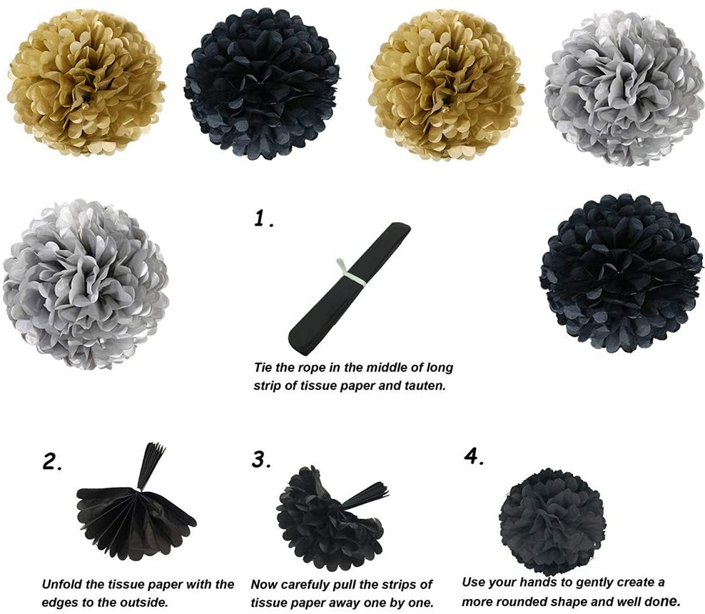 - Make party something special. Create a stylish elegant ambiance with ease with our easy to assemble paper pom poms. Our decorations will pop and bring life to the party!
