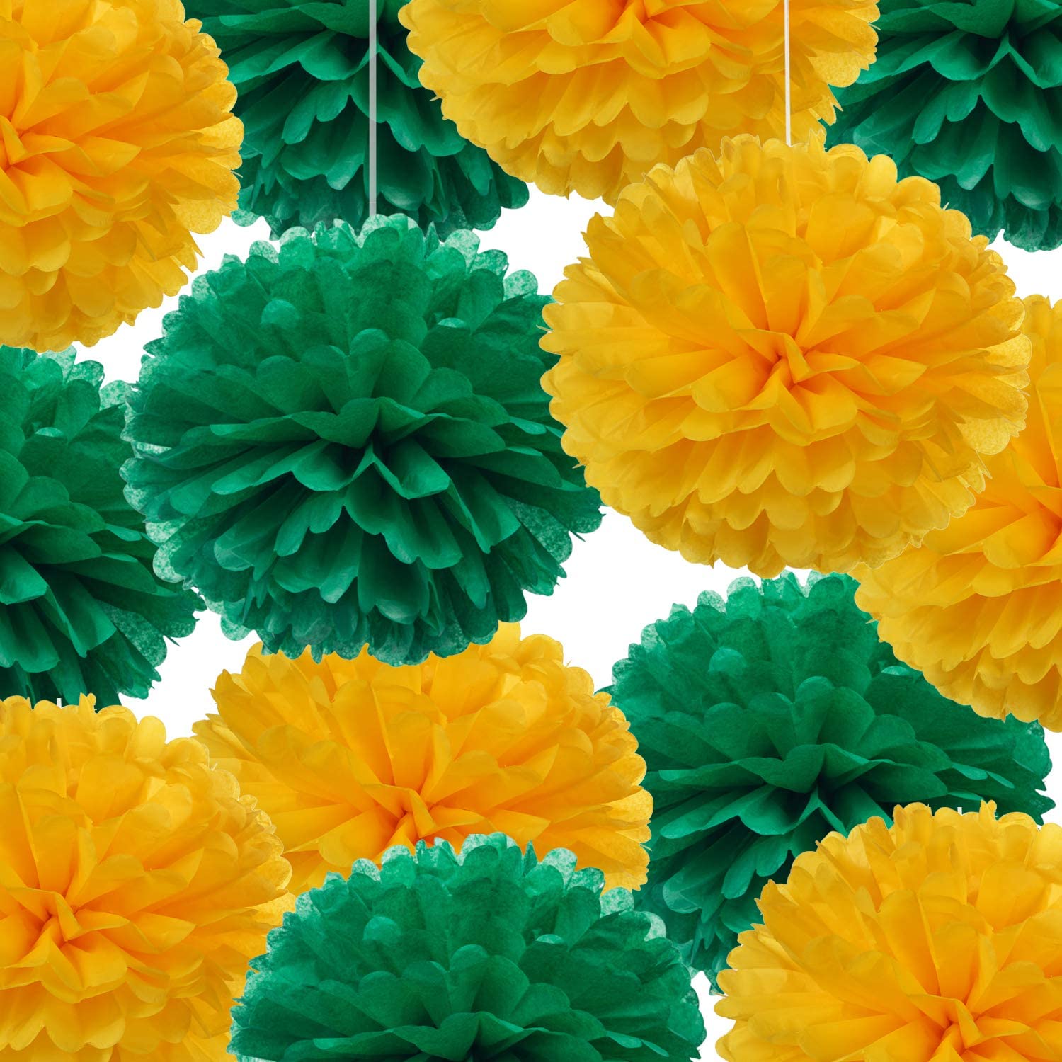 Green And Yellow Pom Pom Flower Decoration For Birthday Parties, Anniversary Party & Baby Shower