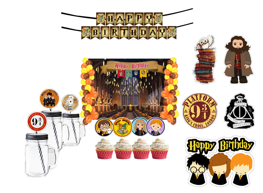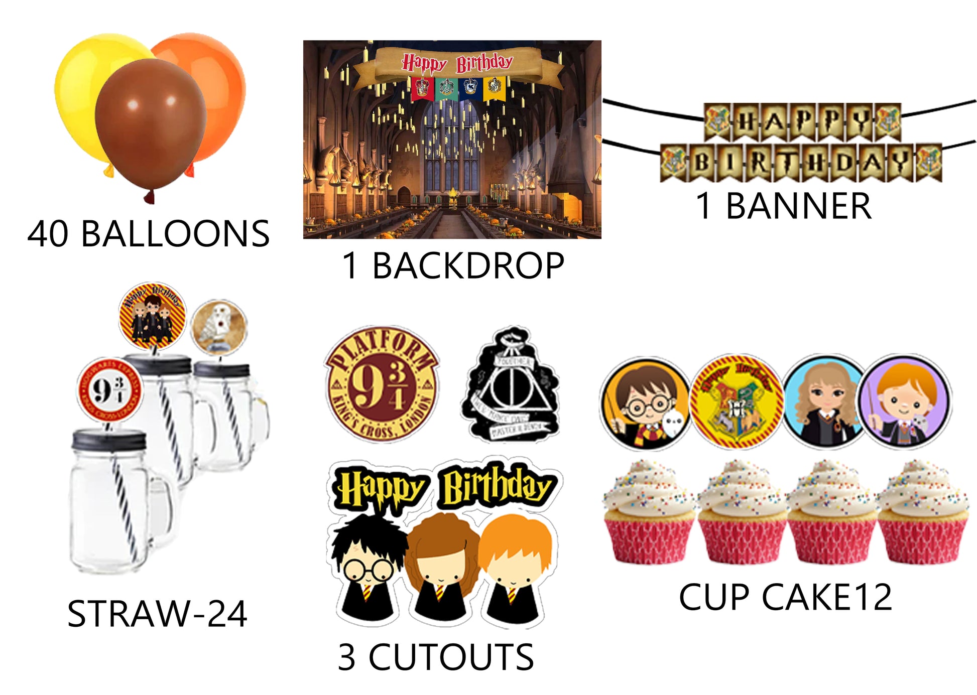 Harry Potter Theme Birthday Complete Party Kit with Backdrop & Decorations