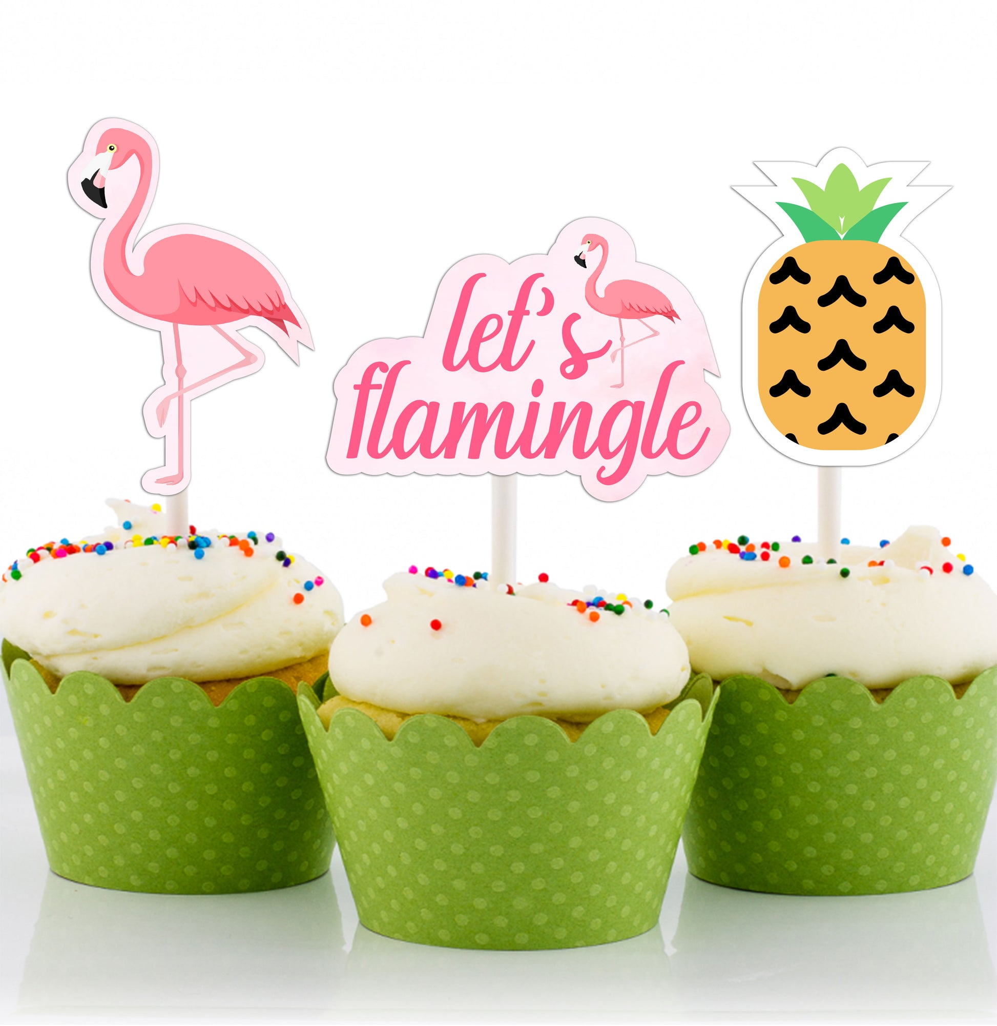Flamingo Theme Birthday Party Cupcake Toppers for Decoration