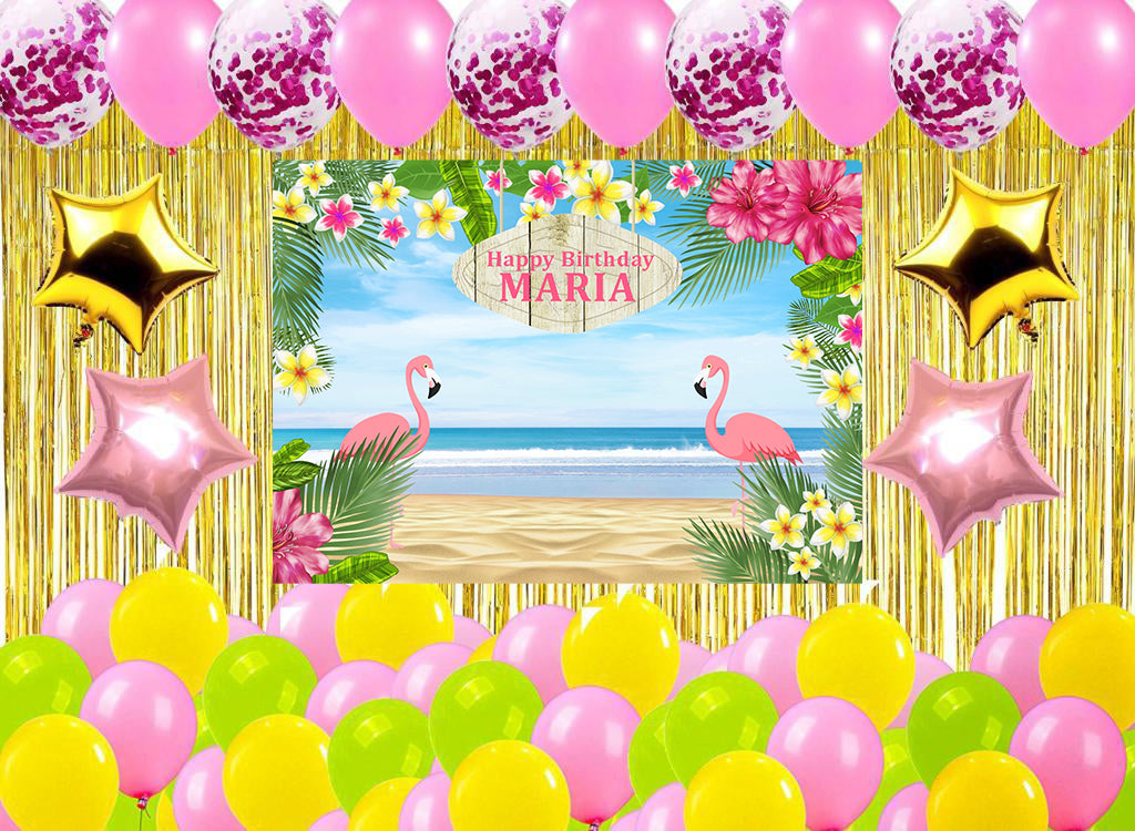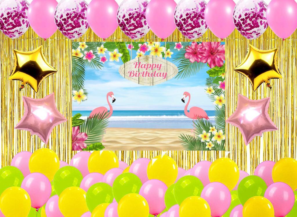 Flamingo Theme Birthday Party Decoration Kit with Backdrop & Balloons