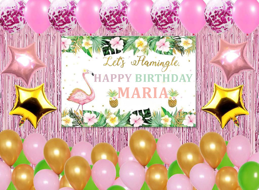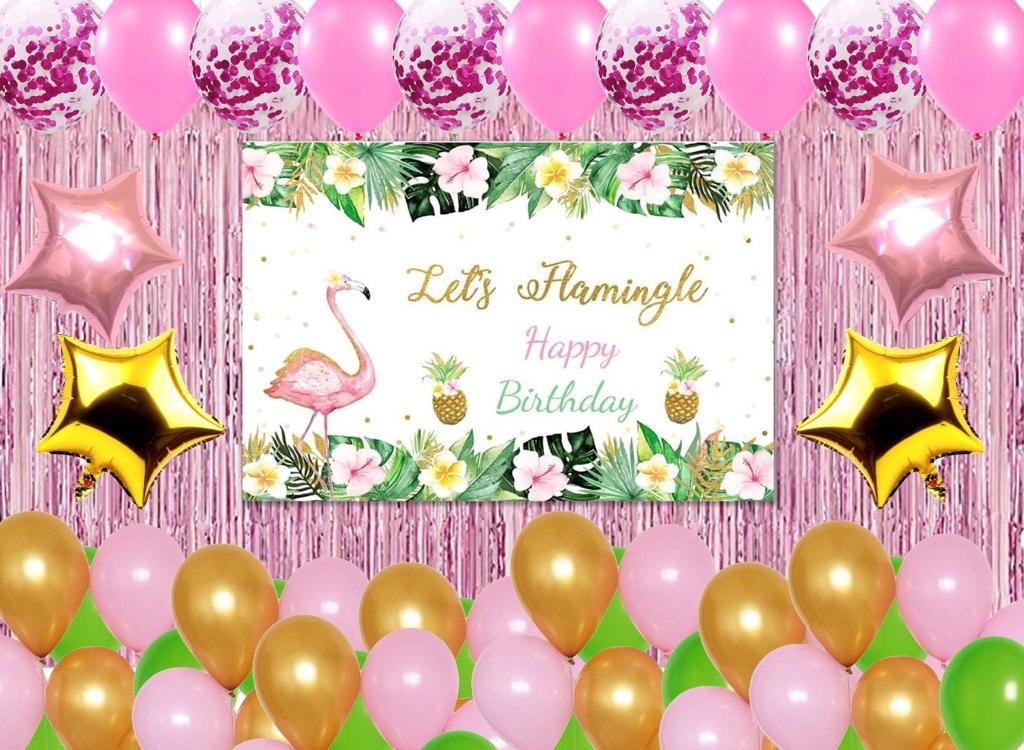Flamingo Theme Birthday Party Decoration Kit with Backdrop & Balloons
