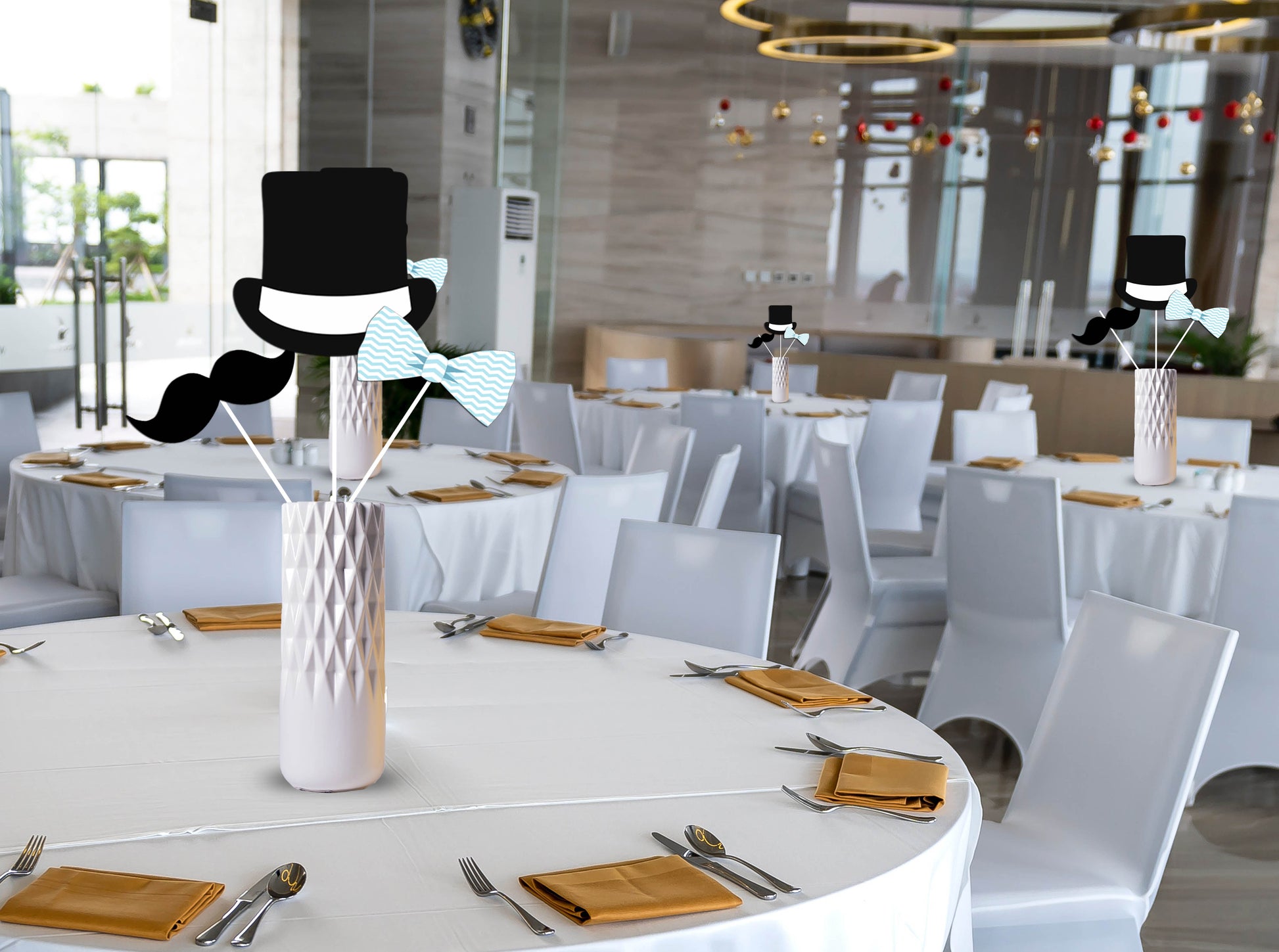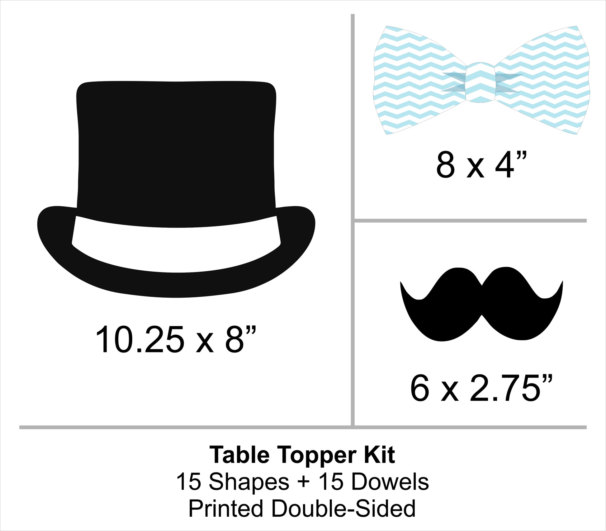 Create easy centerpieces with our Little Man Theme Party DIY Table Toppers, specially designed in 3 different designs.