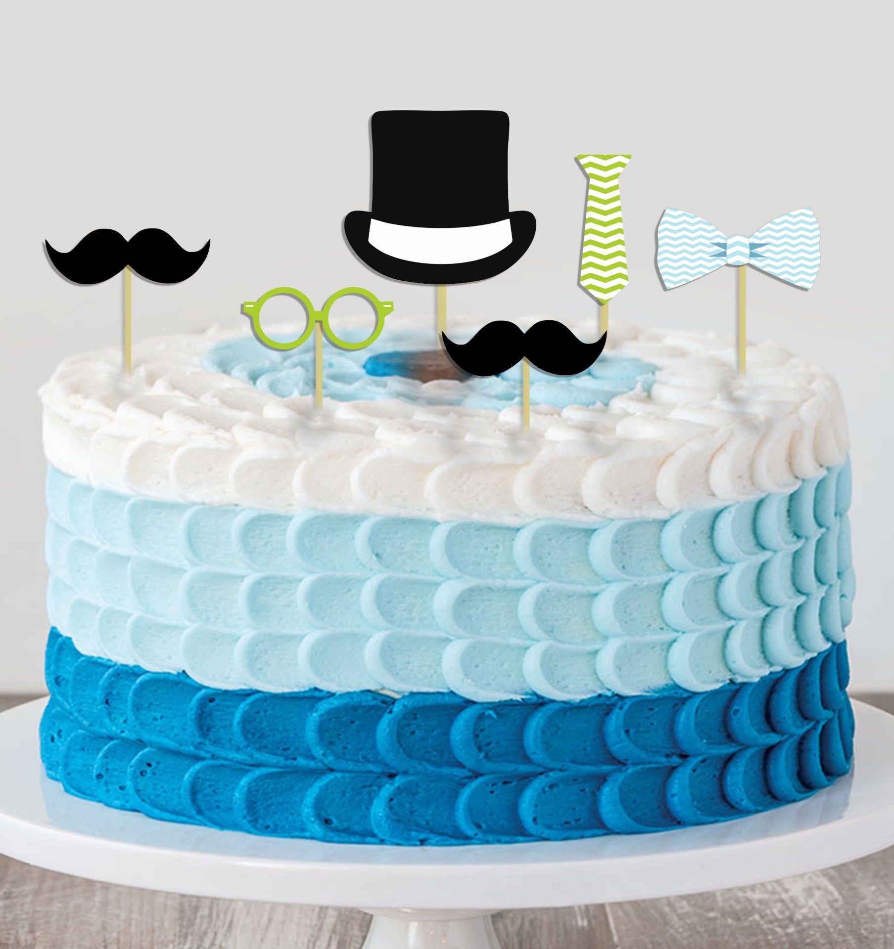 - How to use: - Include Little Man Theme Cake toppers to your treat table to make an extraordinary theme cake show. Style the big cake topper with the two huge picks and add one small selection to each of the ten cut-out shapes to finish the cake embellishment.