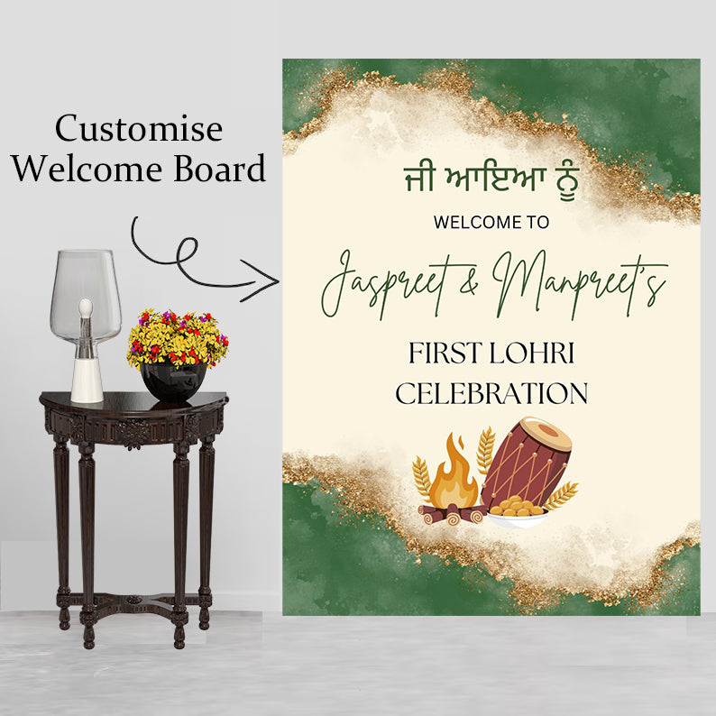 The Lohri theme Welcome board sign is ideal for any home location or outside space. Welcome your friends and family members with a stunning welcome party board.