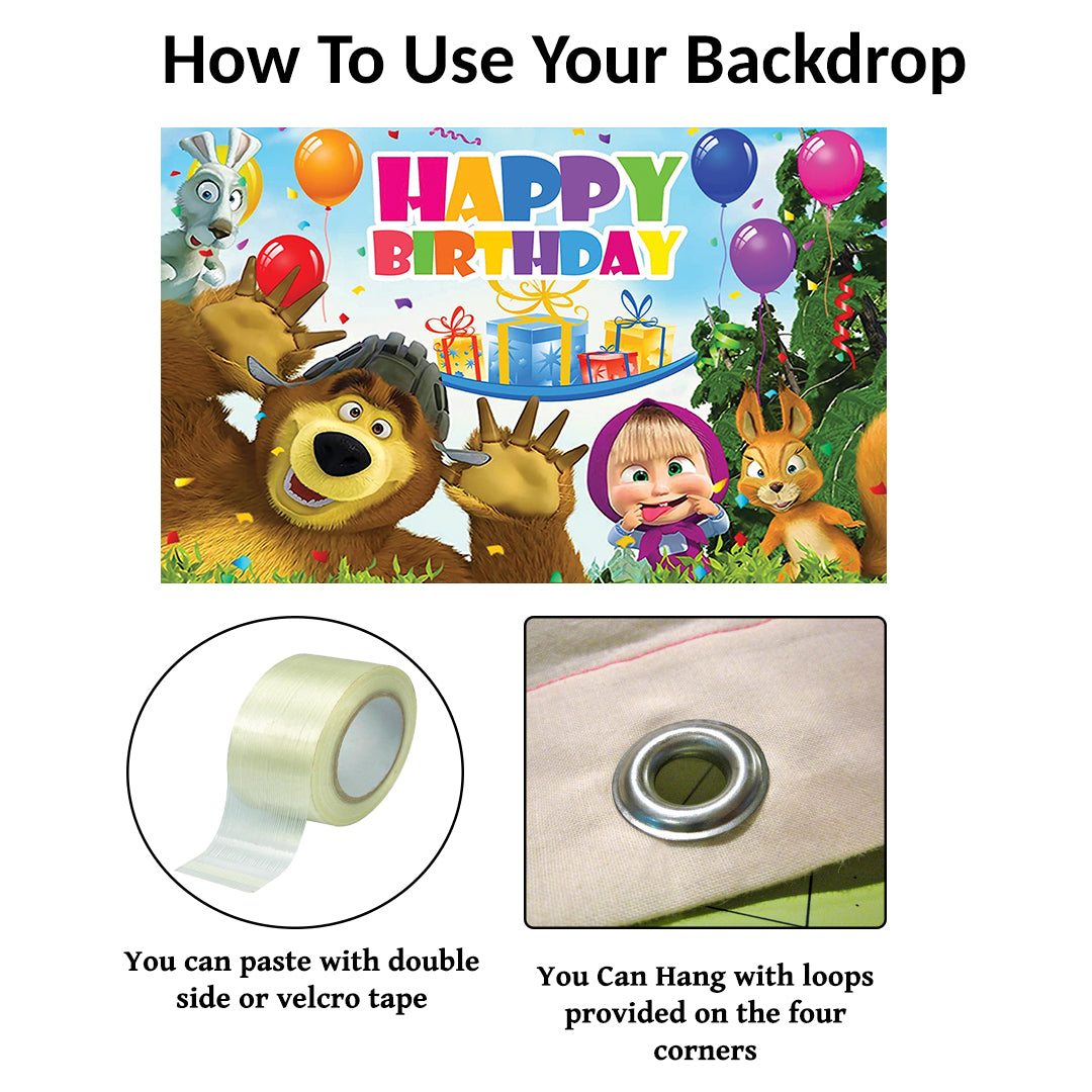 •  Size & Package: (Width) x (Height) 1pc Masha and the Bear Party Backdrop. To facilitate transport and packaging, items are sent folded.