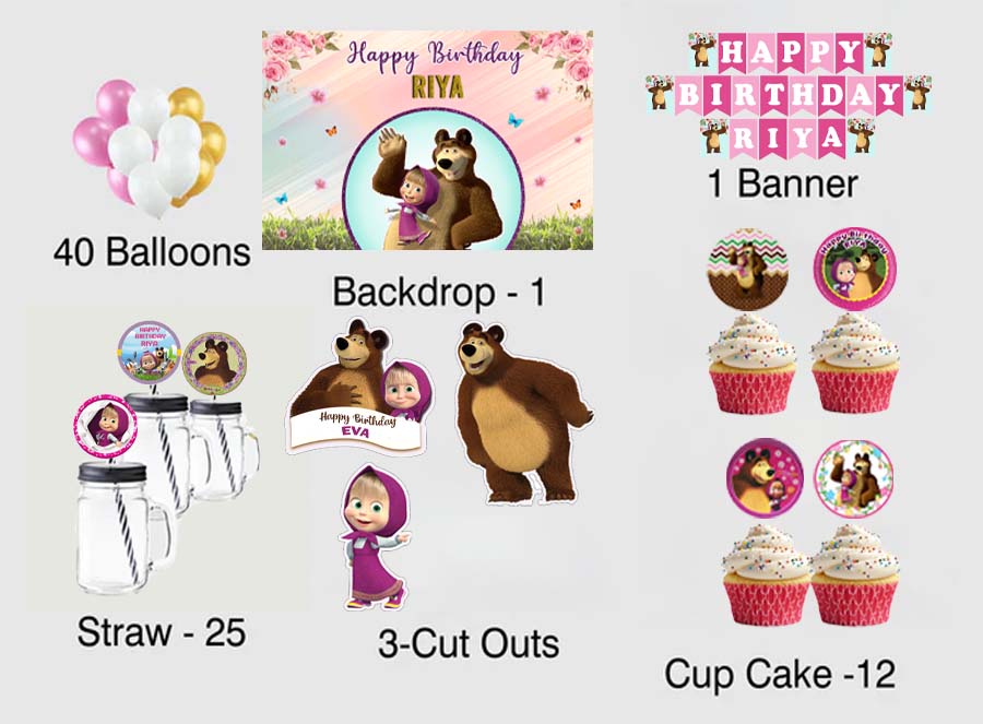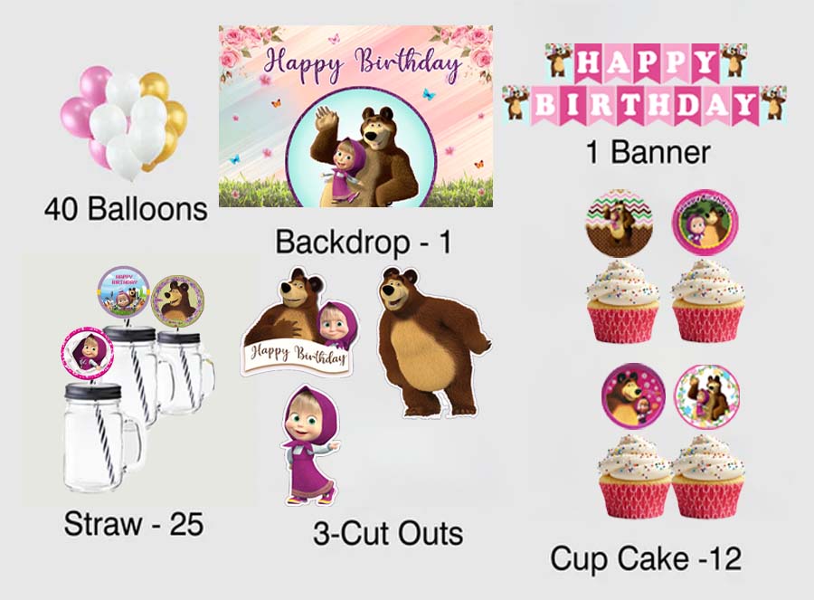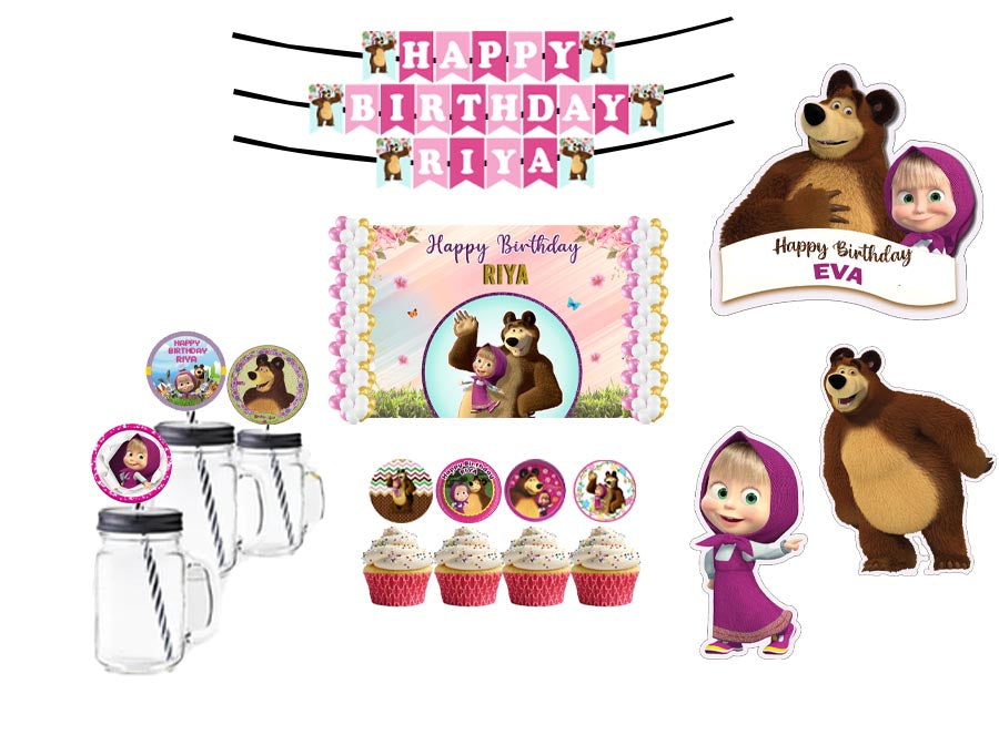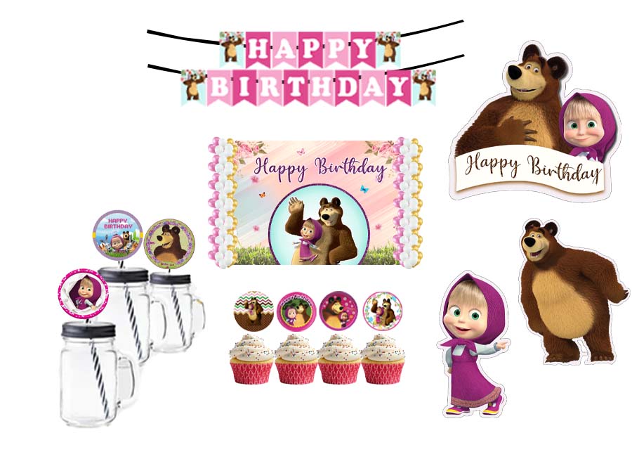 Masha and the Bear Birthday Party Combo Kit with Backdrop & Decorations