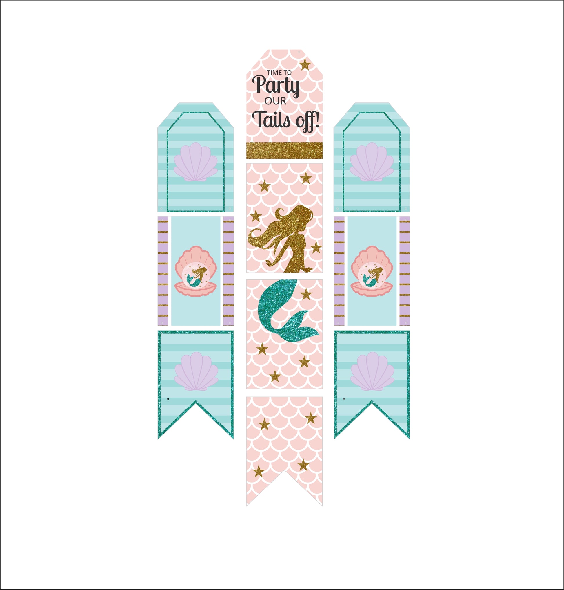 - Material: - Mermaid Party Banner is expertly imprinted on strong card stock paper and incorporates 10 standard pieces. The paper card and string come separately; simple DIY needed.