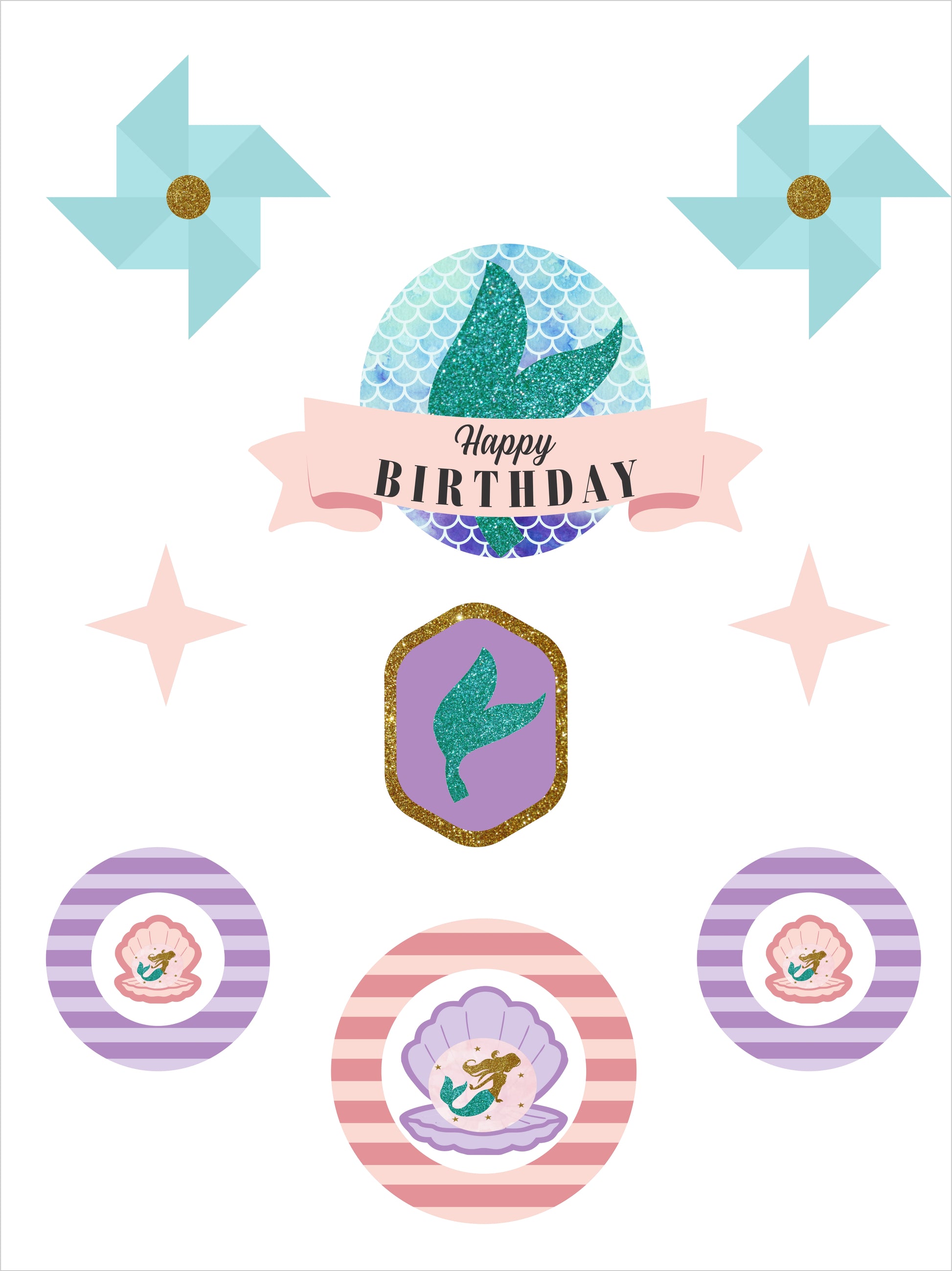 Mermaid Theme Birthday Party Cake Topper /Cake Decoration Kit
