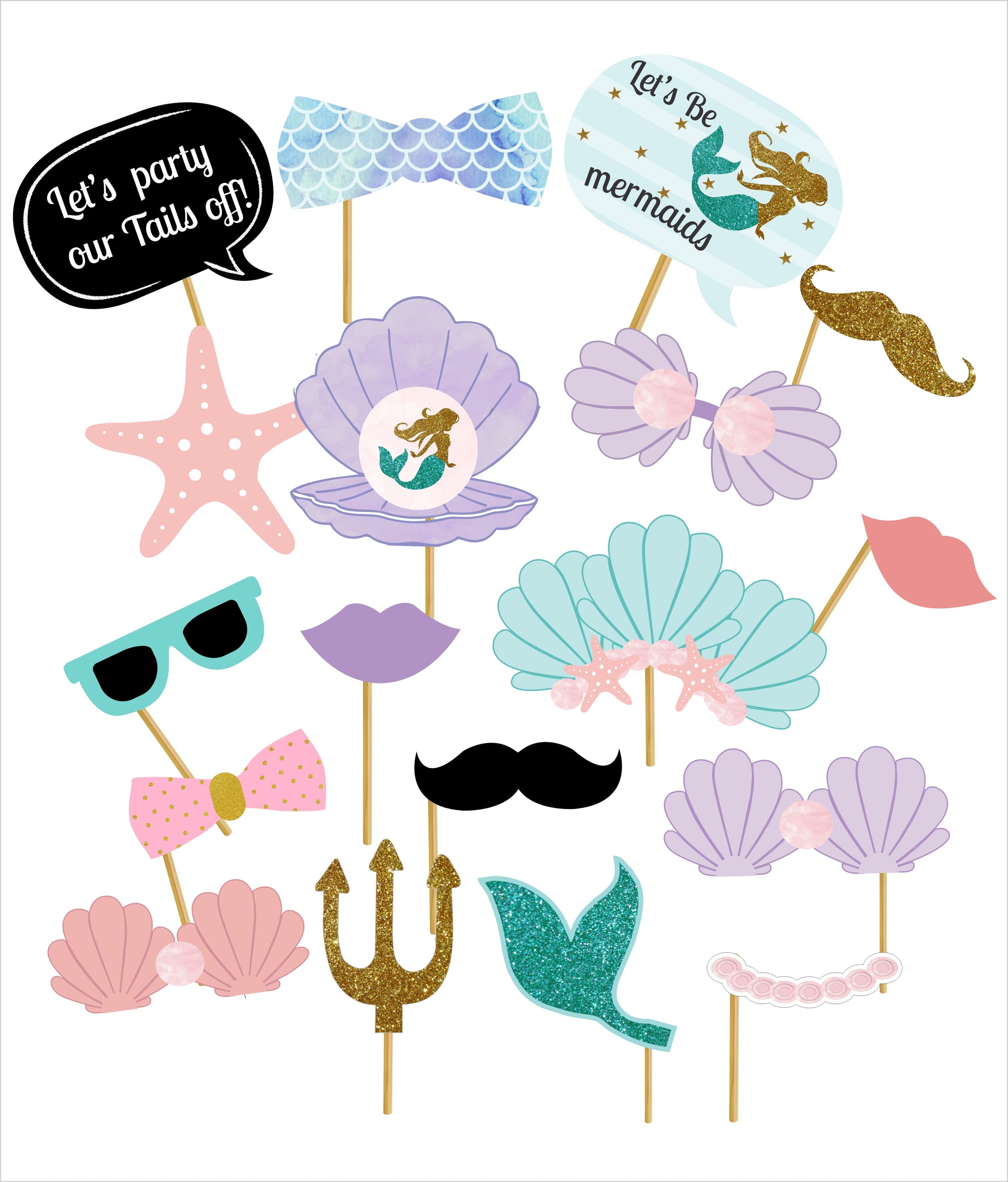 - Material: - Mermaid Theme photo booth props are printed on thick cardstock paper.