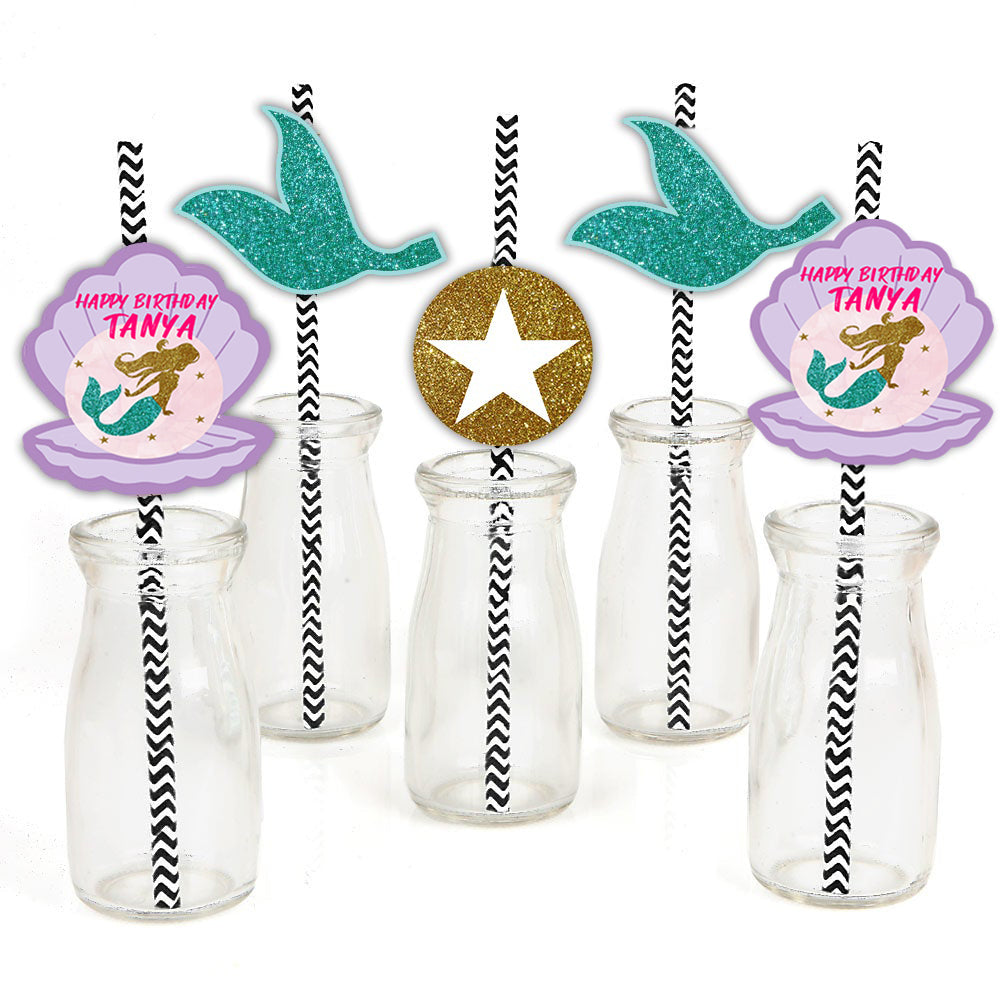 Mermaid Theme Birthday Party Paper Decorative Straws