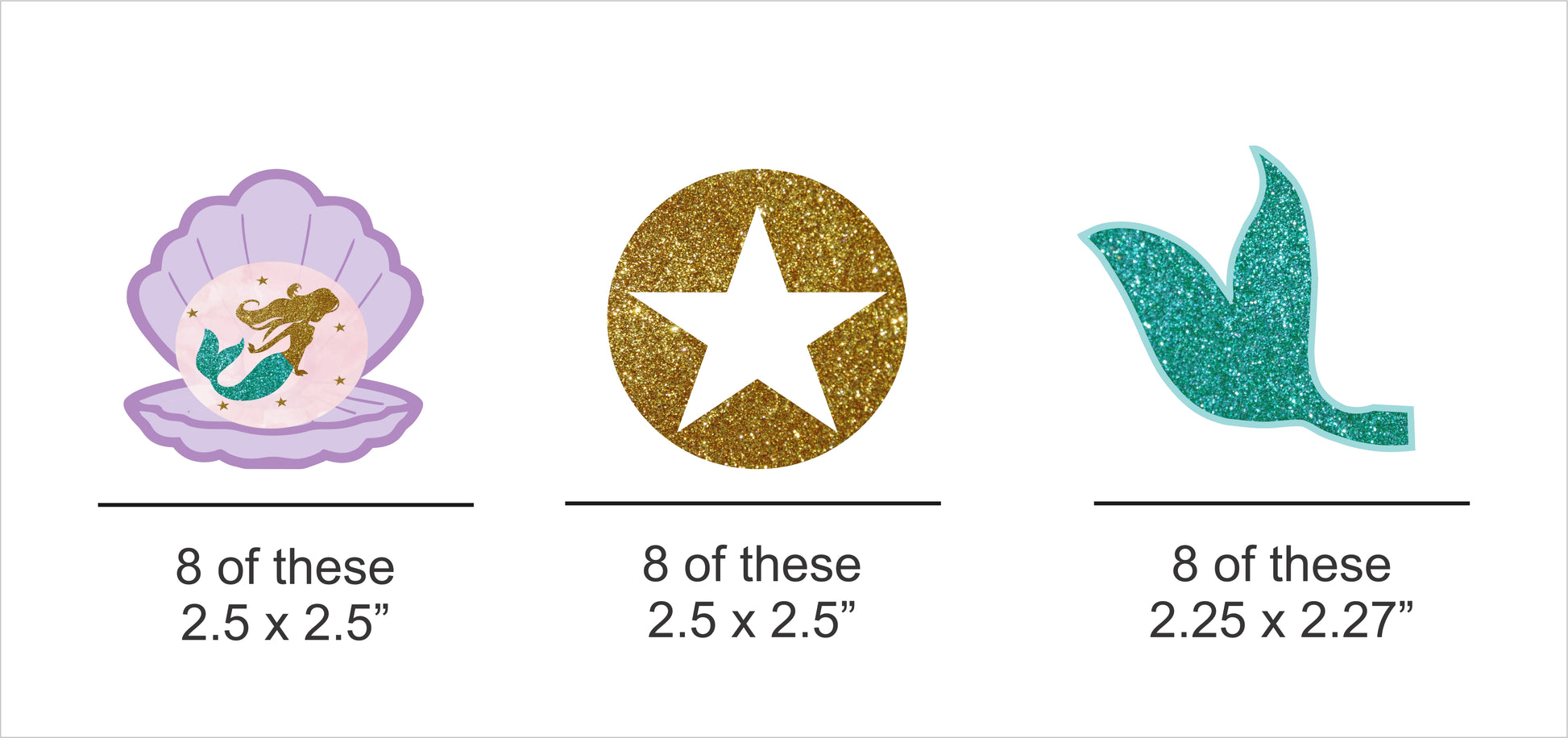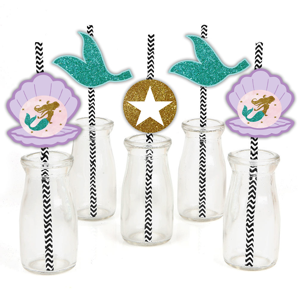 - Package includes: - 24 mermaid theme paper cut outs, 25 coordinating paper straws & glue dot.