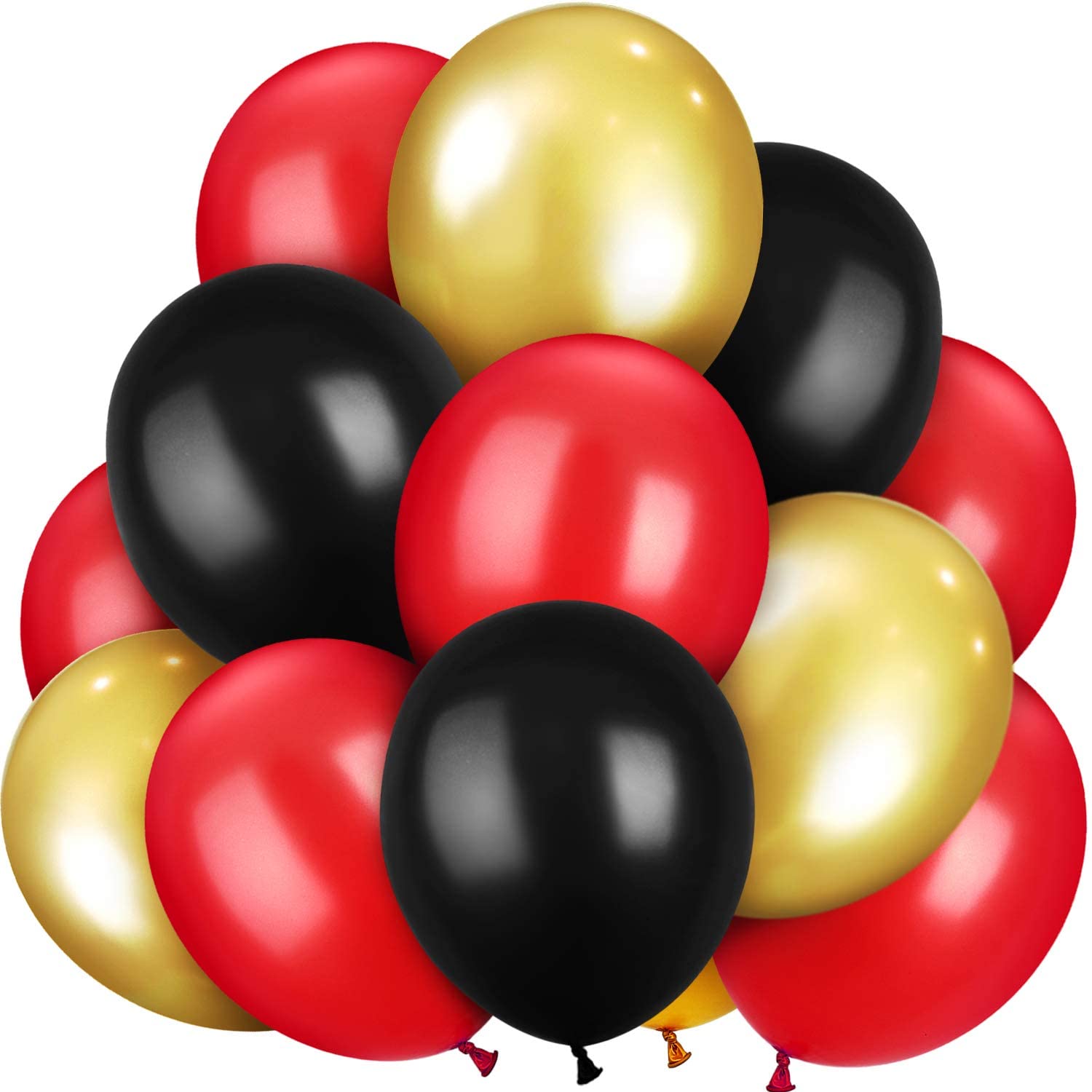 - 9 inch solid metallic Gold Red and Black balloons. The charming balloons are made of natural rubber latex and support helium and air excluded .