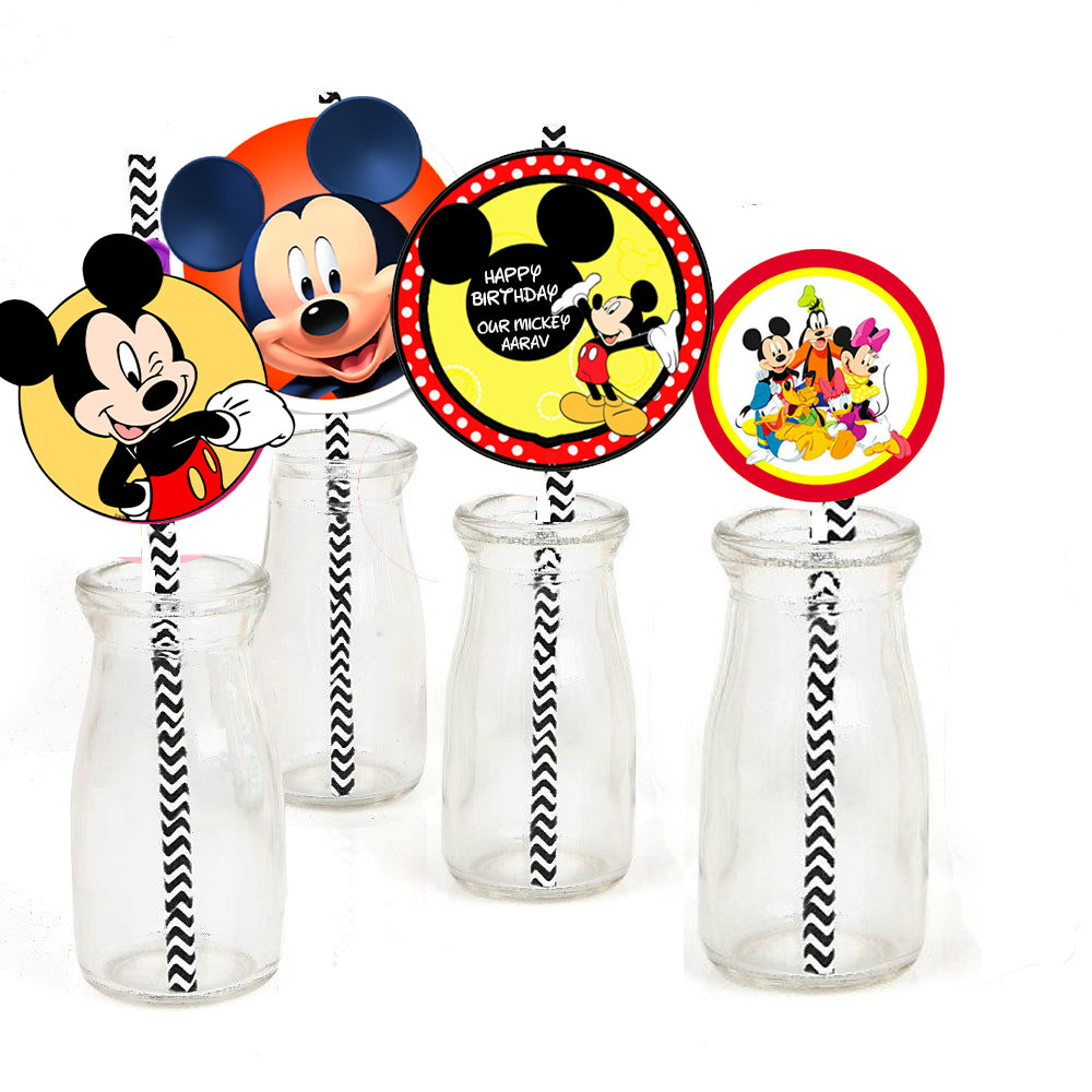 - The package includes - 24 Mickey Mouse theme paper cut-outs, 24 coordinating paper straws & a glue dot.