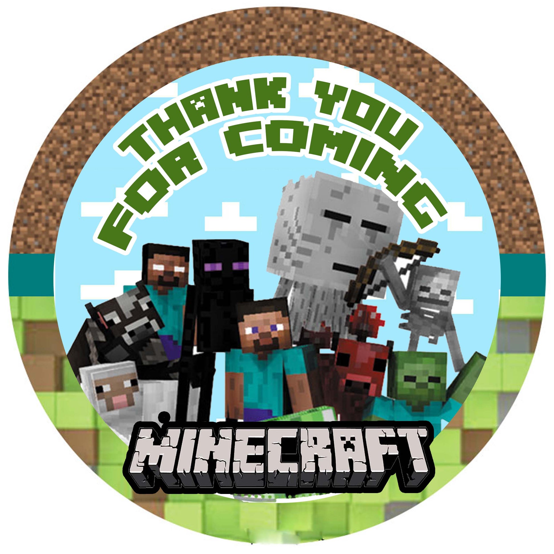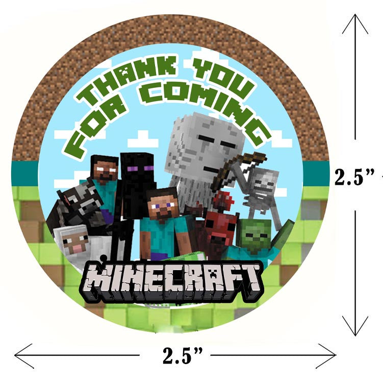 Minecraft Theme Birthday Party Thank You Gift Tags