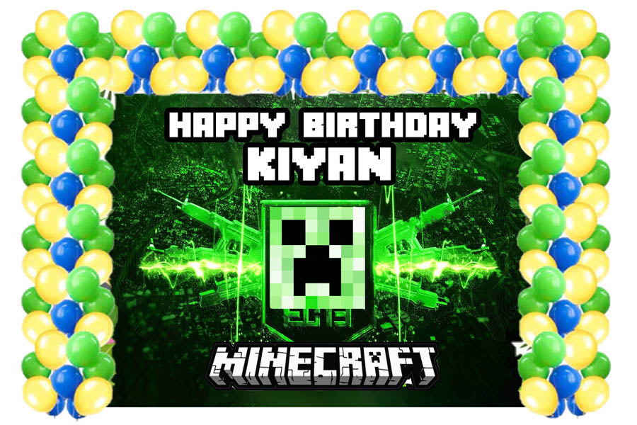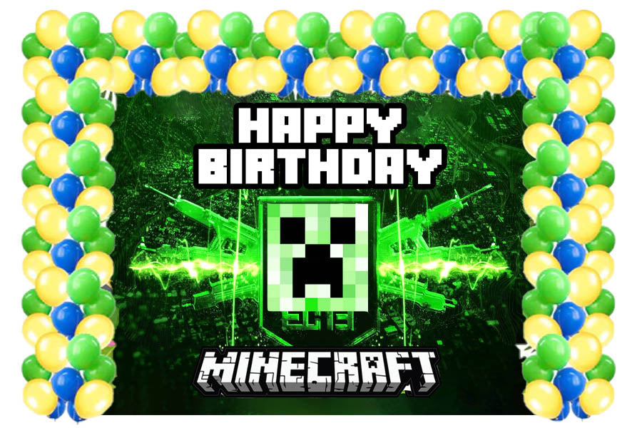 Minecraft Theme Birthday Party Decoration kit with Backdrop & Balloons