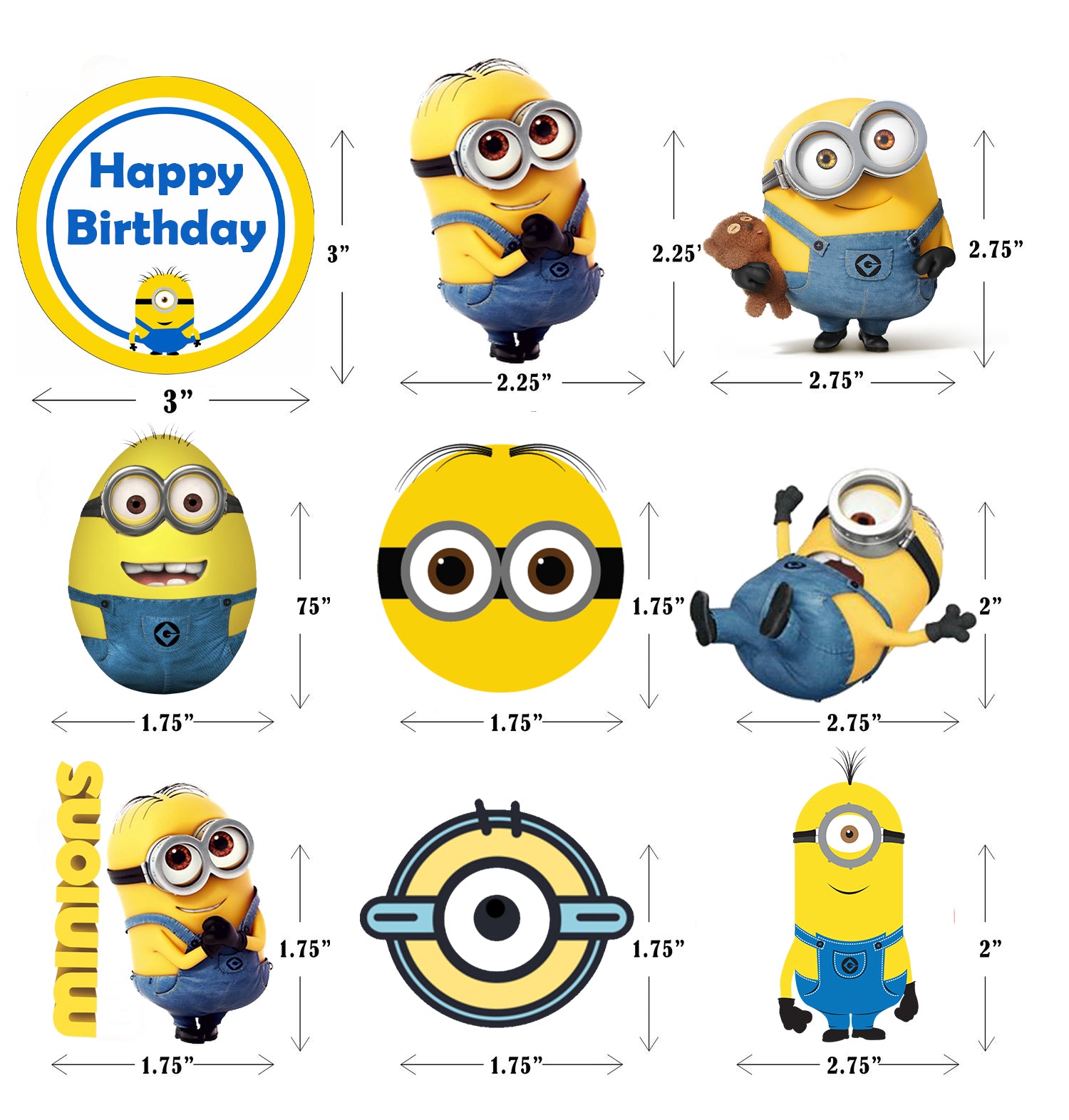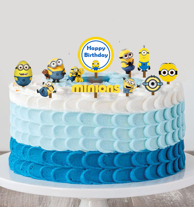 - How to use: - Include Minnion Theme Cake toppers to your treat table to make an extraordinary theme cake show. Style the big cake topper with the two huge picks and add one small selection to each of the ten cut-out shapes to finish the cake embellishment.