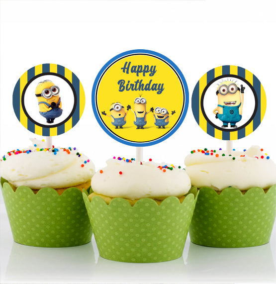Minnion Theme Birthday Party Cupcake Toppers for Decoration