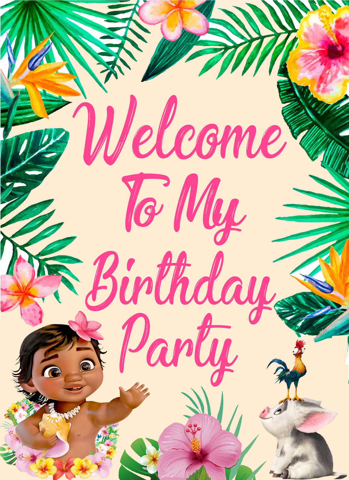 The Moana theme Welcome board sign is ideal for any home location or outside space. Welcome your friends and family members with a stunning welcome birthday party board.