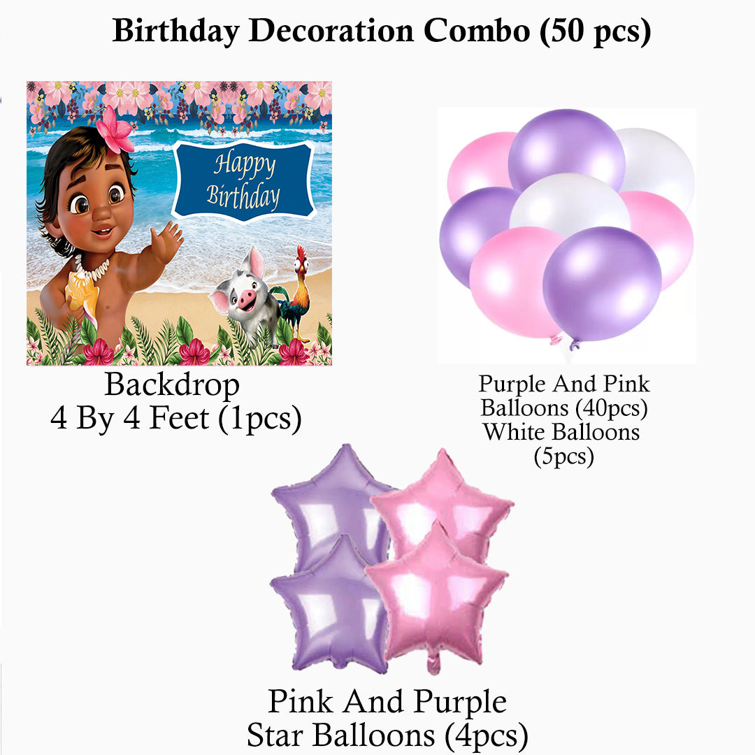- PACKAGE: The decorations set includes: 4ft x 4ft backdrop banner made of high-quality star flex, 40 Latex Balloons Purple and Pink, 5 pcs White Balloons, 4 pcs Purple and Pink Star Balloons.