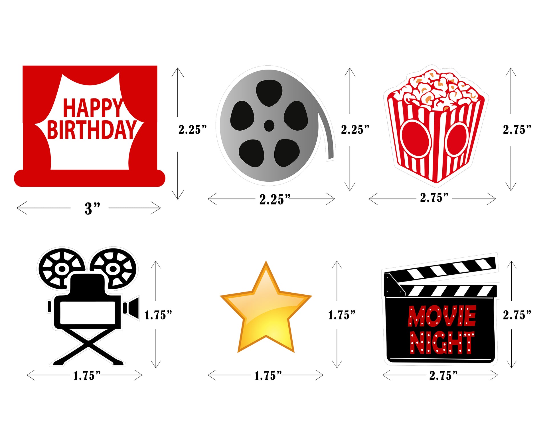 - How to use: - Include Movie Night Theme Cake toppers to your treat table to make an extraordinary theme cake show. Style the big cake topper with the two huge picks and add one small selection to each of the ten cut-out shapes to finish the cake embellishment.