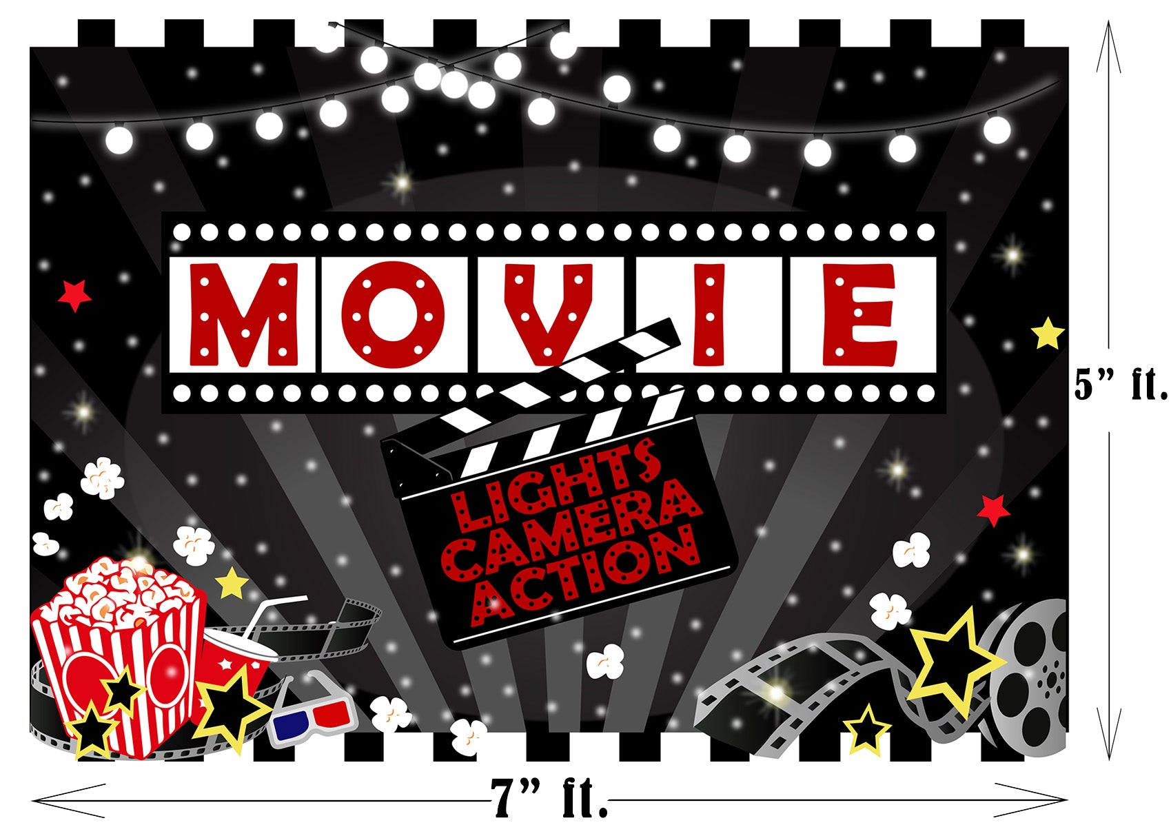 Size & Package: (Width) x (Height) 1pc Movie Night Party Backdrop. To facilitate transport and packaging, items are sent folded.