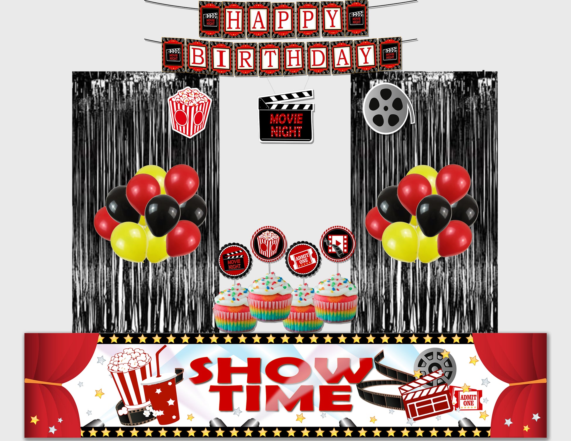 Movie Night Theme Combo Kit for Decoration with Foil Curtain