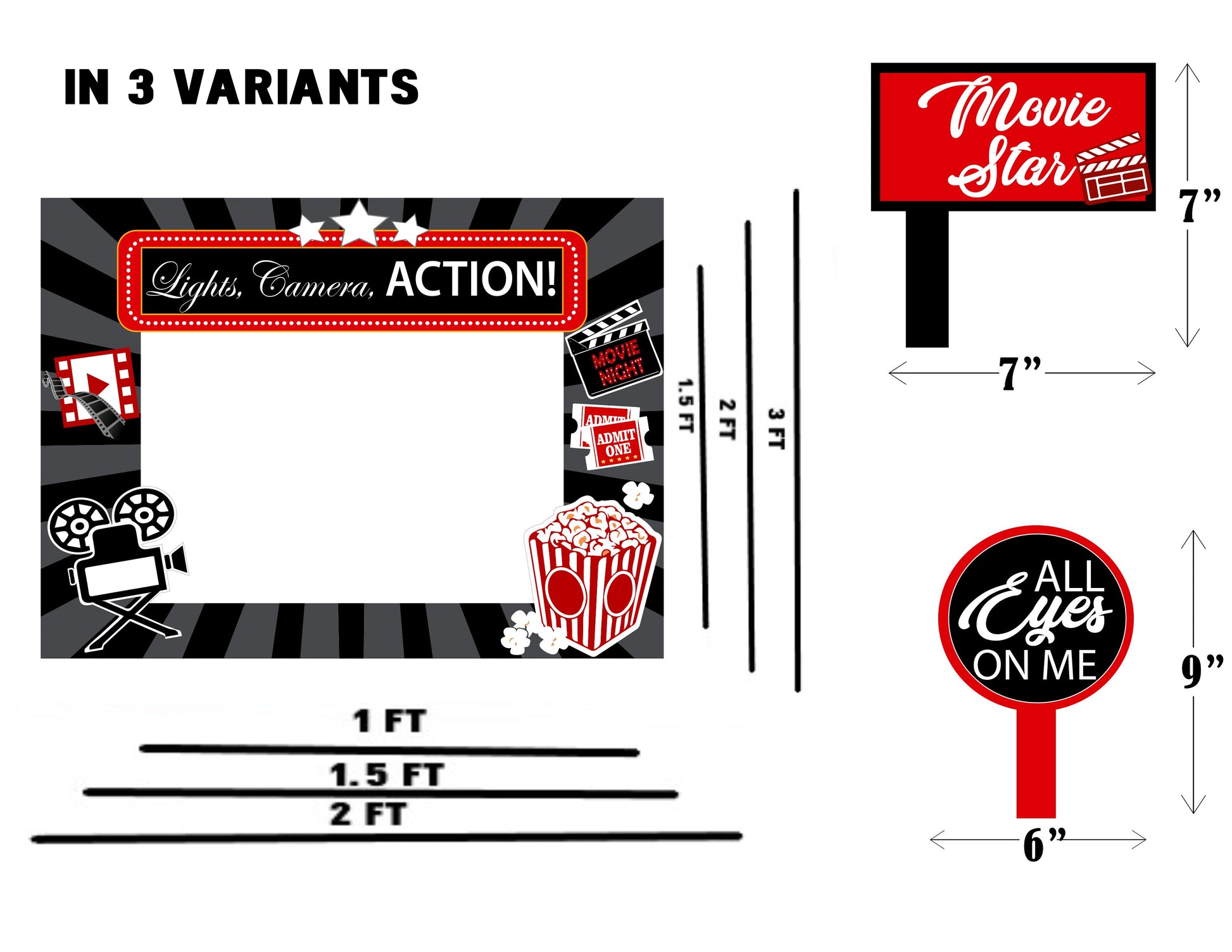 Movie Night Theme Selfie Photo Booth Frame & Props