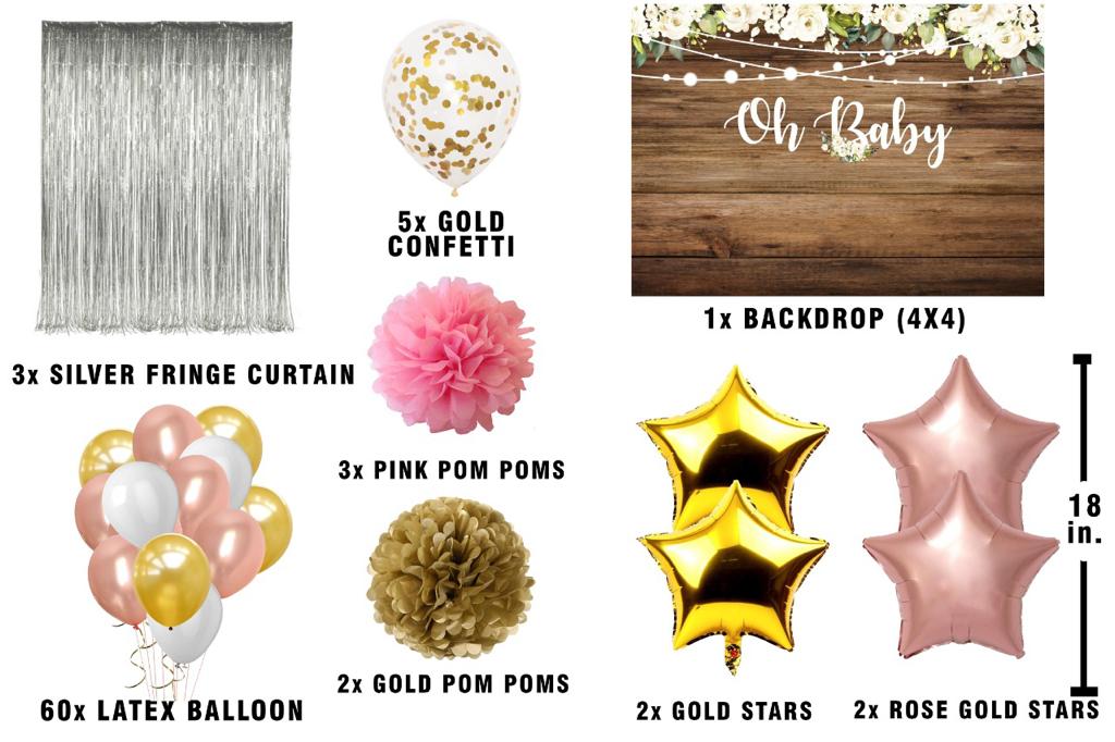 - Package includes - Backdrop-flex material light and thin, Balloons- 60 pcs Metallic 20 pc each green dark green and purple and six pc Pompom (3 pc each Purple and Green) and six pc paper Lantern (3 pc each Purple and Green). All of the kits are useful for Oh Baby parties.
