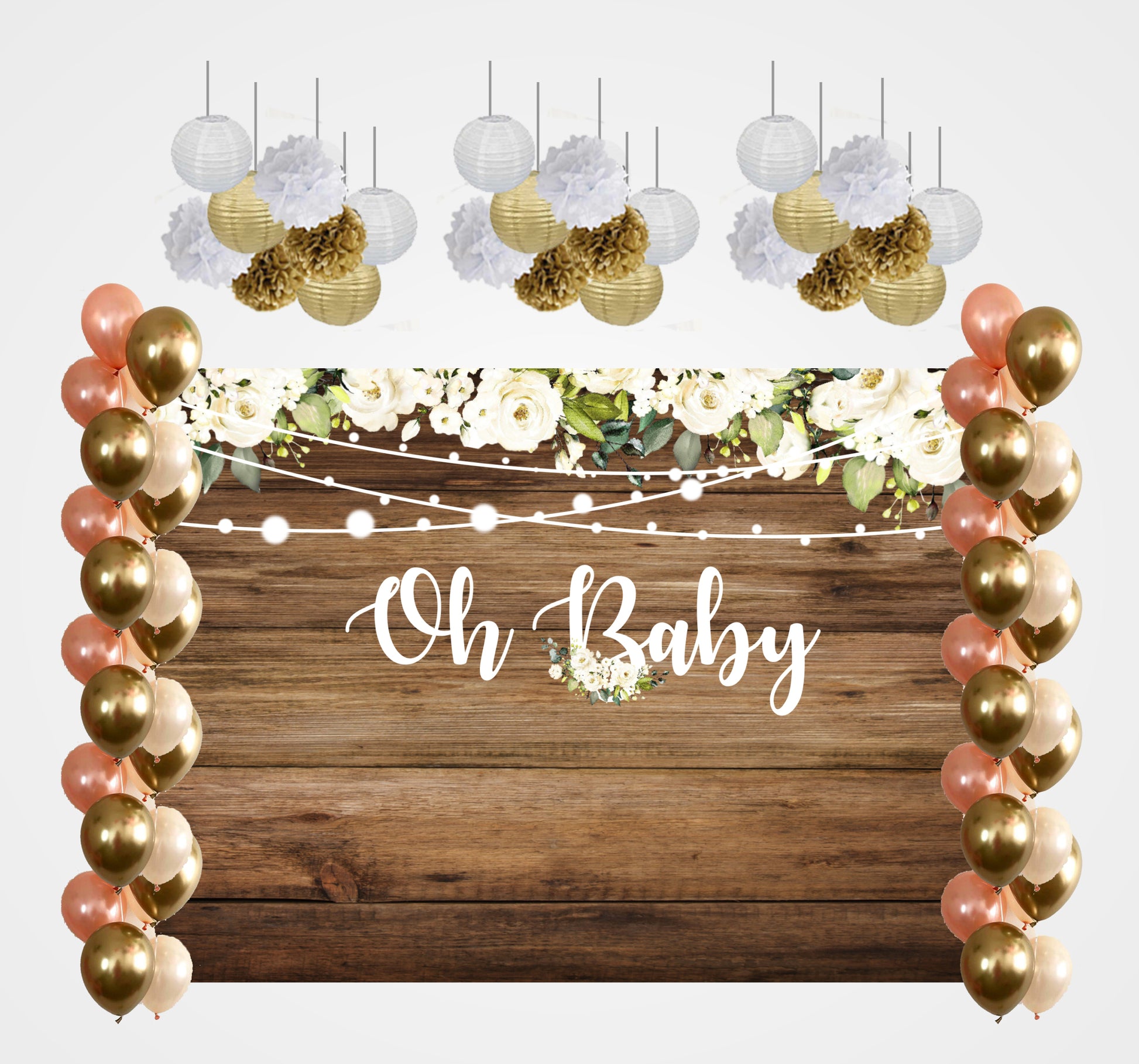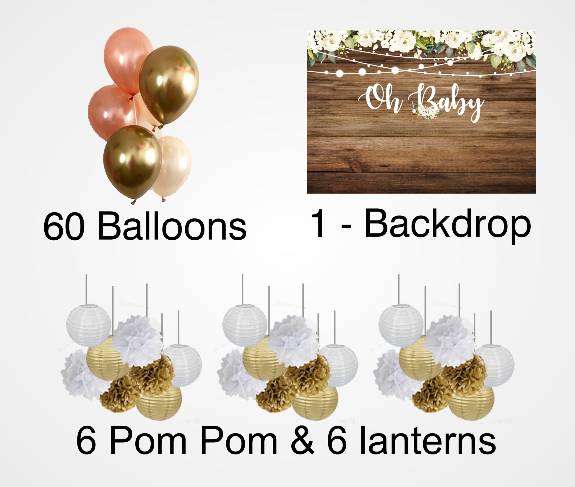 - Package includes - Backdrop-flex material light and thin, Balloons- 60 pcs Metallic 20 pc each green dark green and purple and six pc Pompom (3 pc each Purple and Green) and six pc paper Lantern (3 pc each Purple and Green). All of the kits are useful for Oh Baby parties.