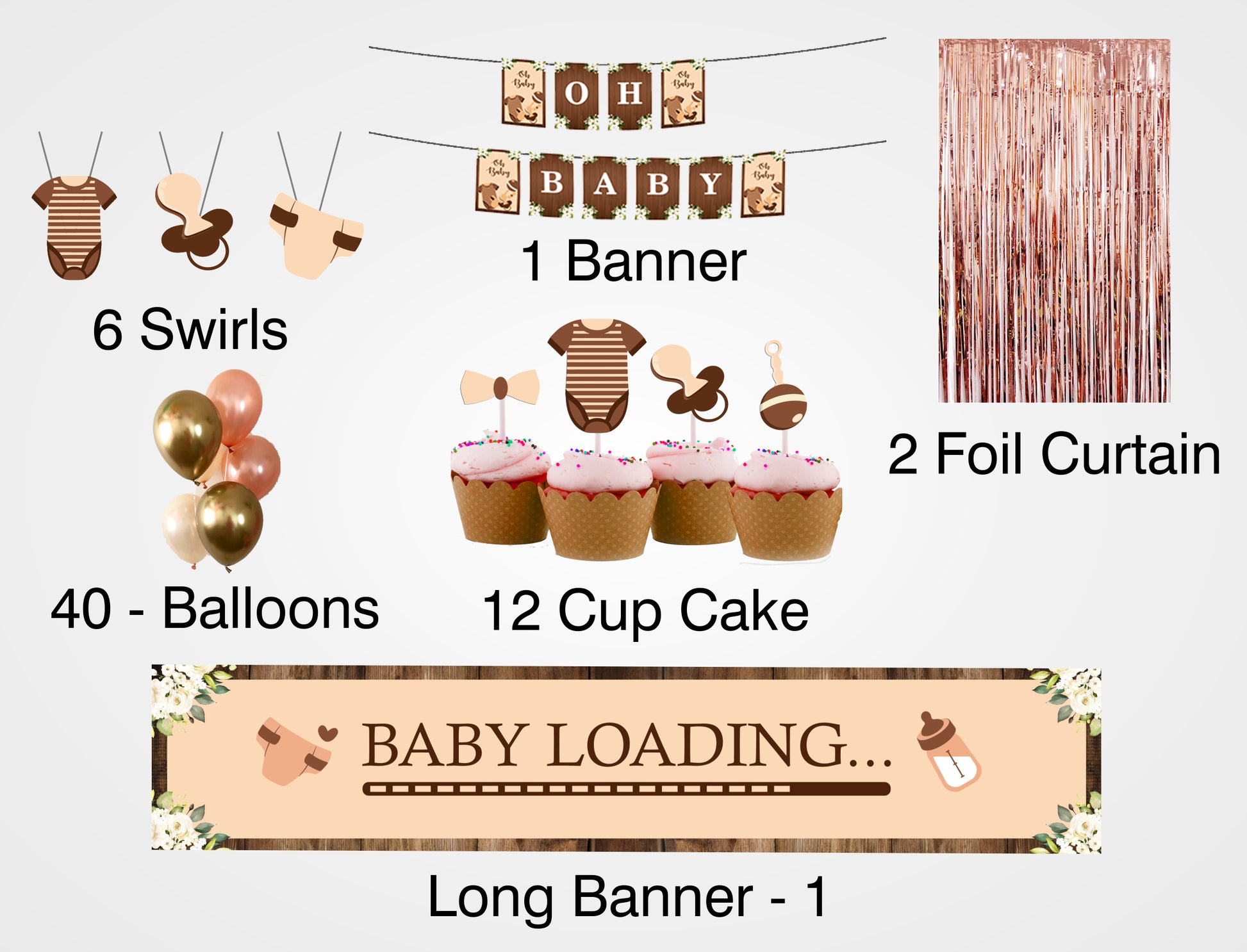 - Package Includes - 1 happy birthday letter banner, 6 pcs Swirls hangings,2 pcs Rose gold Foil Fringe Shiny Curtain, 40 pcs Latex Balloons-Rose gold ,white and gold ,12 cupcake topper and long banner. All of the kits are useful for Party decorations.