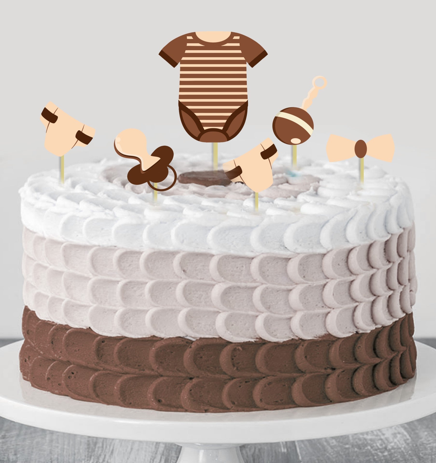 - How to use: - Include Oh Baby Cake toppers to your treat table to make an extraordinary theme cake show. Style the big cake topper with the two huge picks and add one small selection to each of the ten cut-out shapes to finish the cake embellishment.