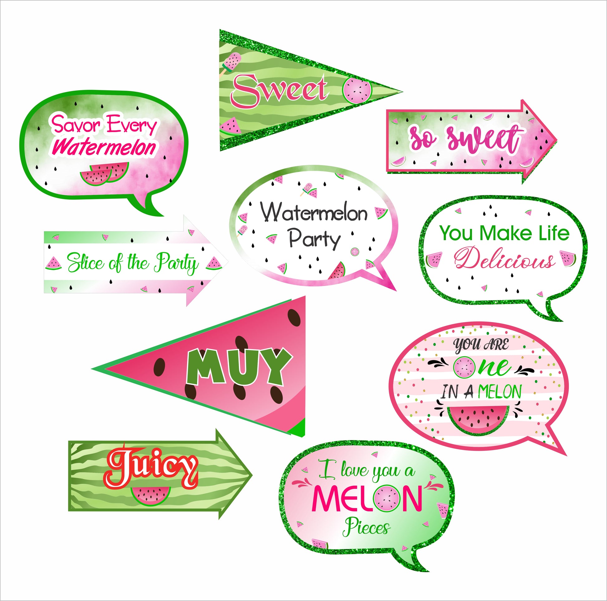 One In A Melon Theme photo prop pack accompanies ten pieces and will add fun for kids and adults. Take entertaining party photos while making memories with these photo booth props. Everyone will adore the fun photographs they will make with these excellent props.