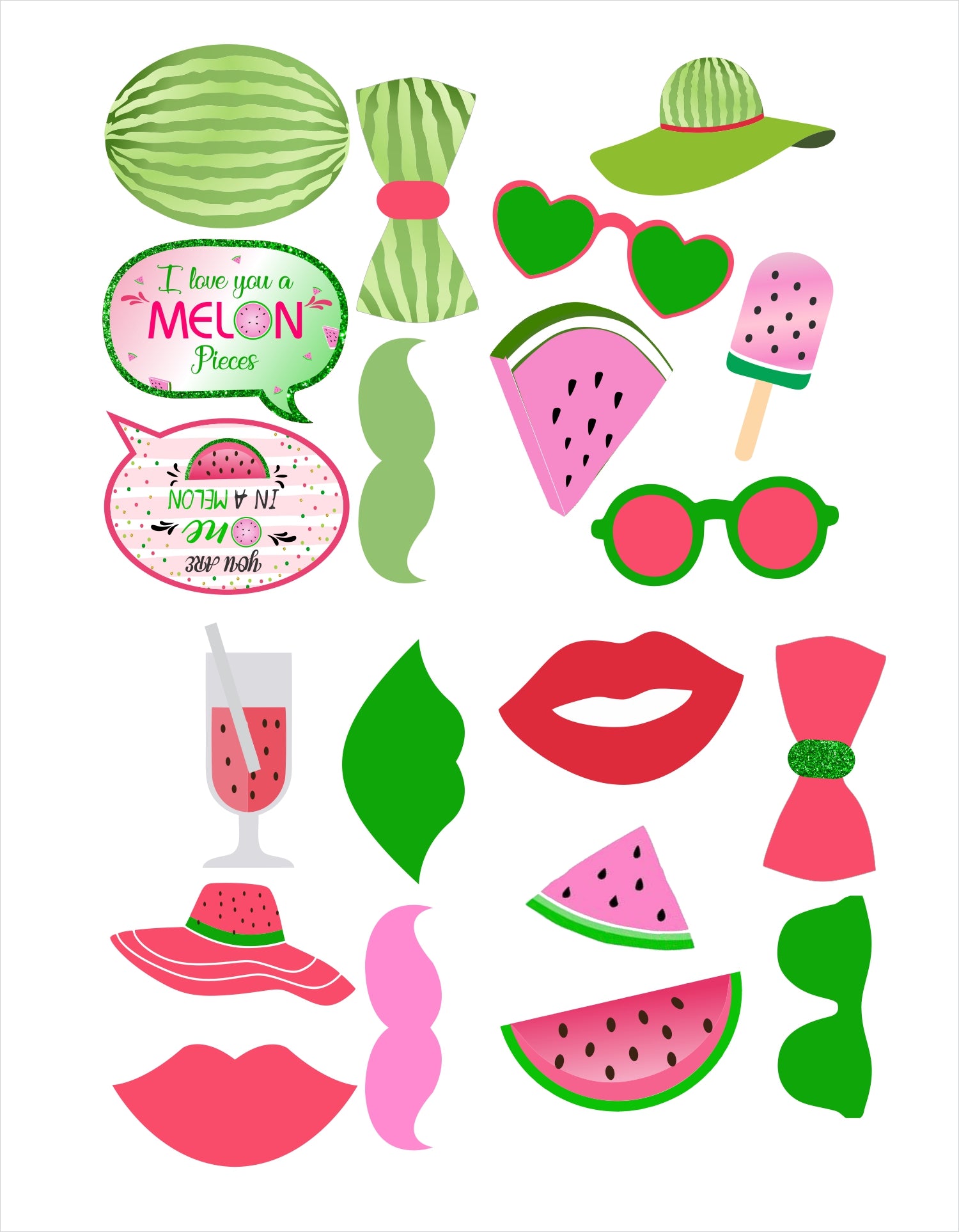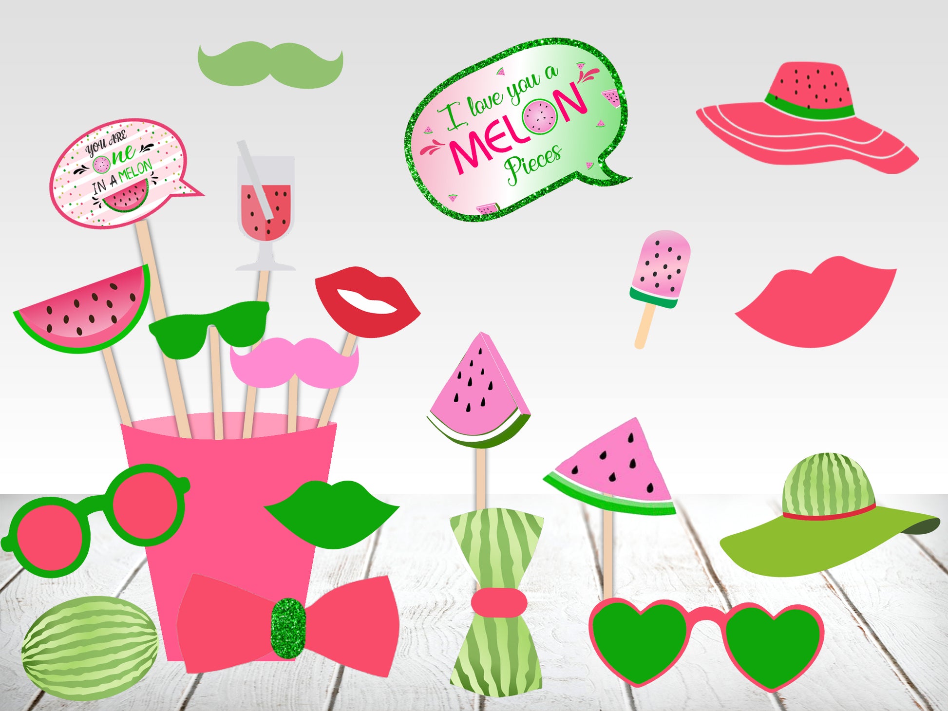 One In A Melon Theme Birthday Party Photo Booth Props Kit
