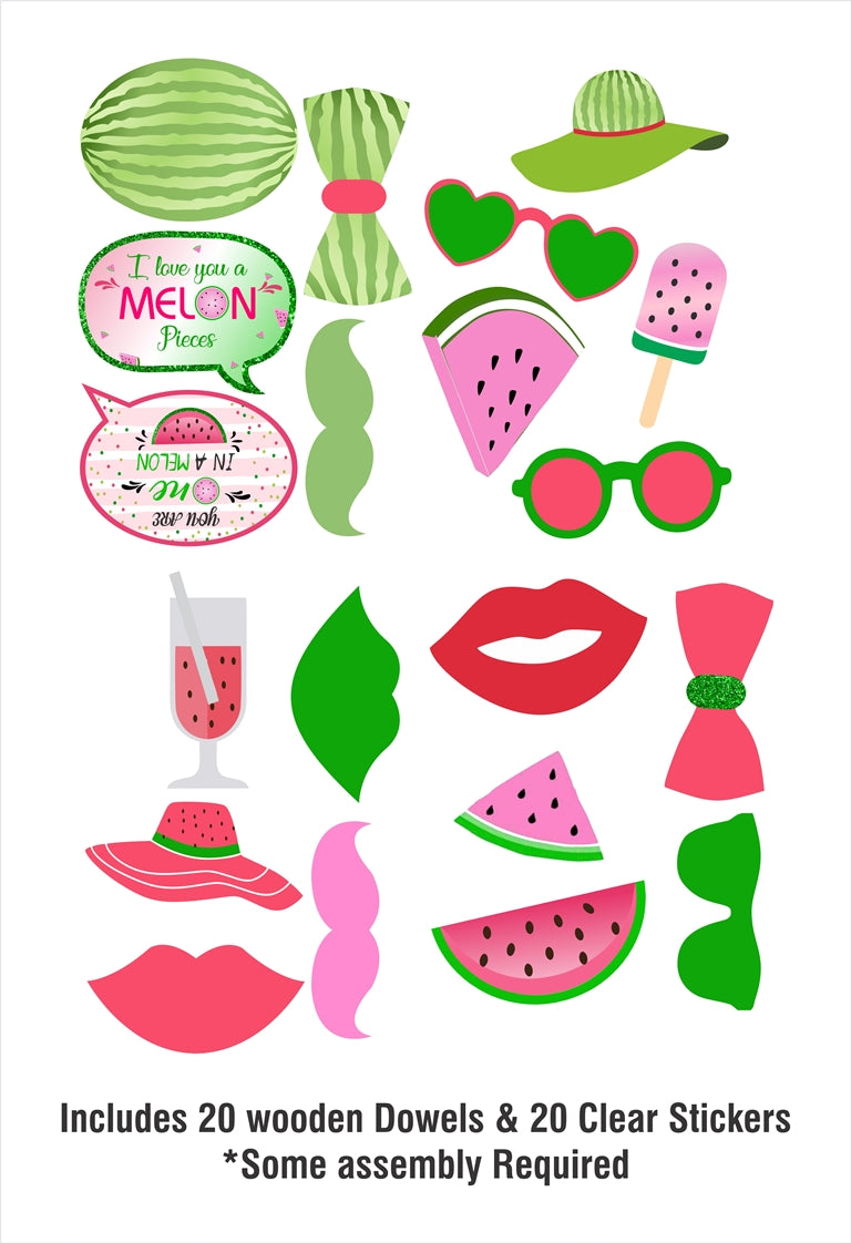 One In A Melon Theme photo prop pack accompanies 20 pieces and will add fun for kids and adults. Take entertaining party photos while making memories with these photo booth props. Everyone will adore the fun photographs they will take with these excellent props.
