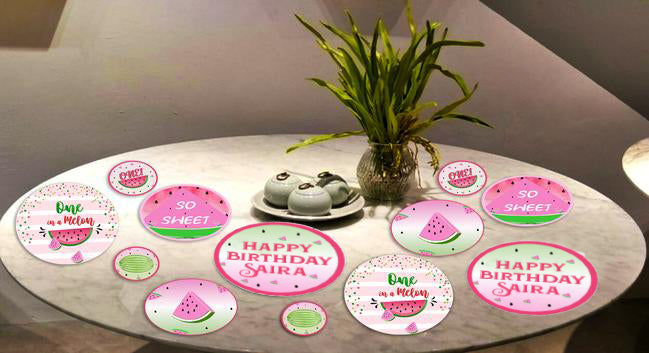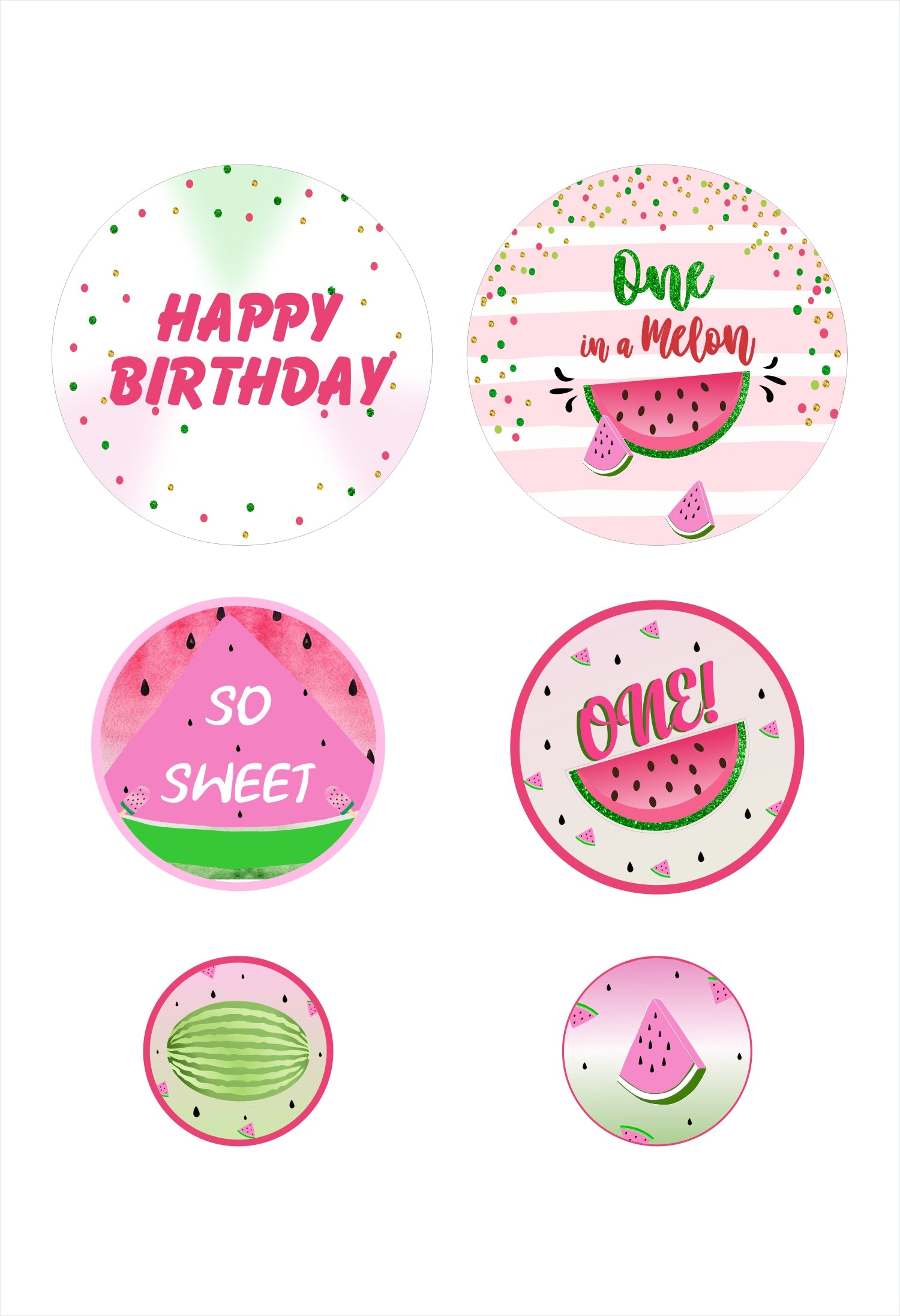 One In A Melon Theme Birthday Party table confetti can be utilized or dispersed on the tables or hung together to make a pleasant banner. You can use them as One In A Melon Party Gift tags.