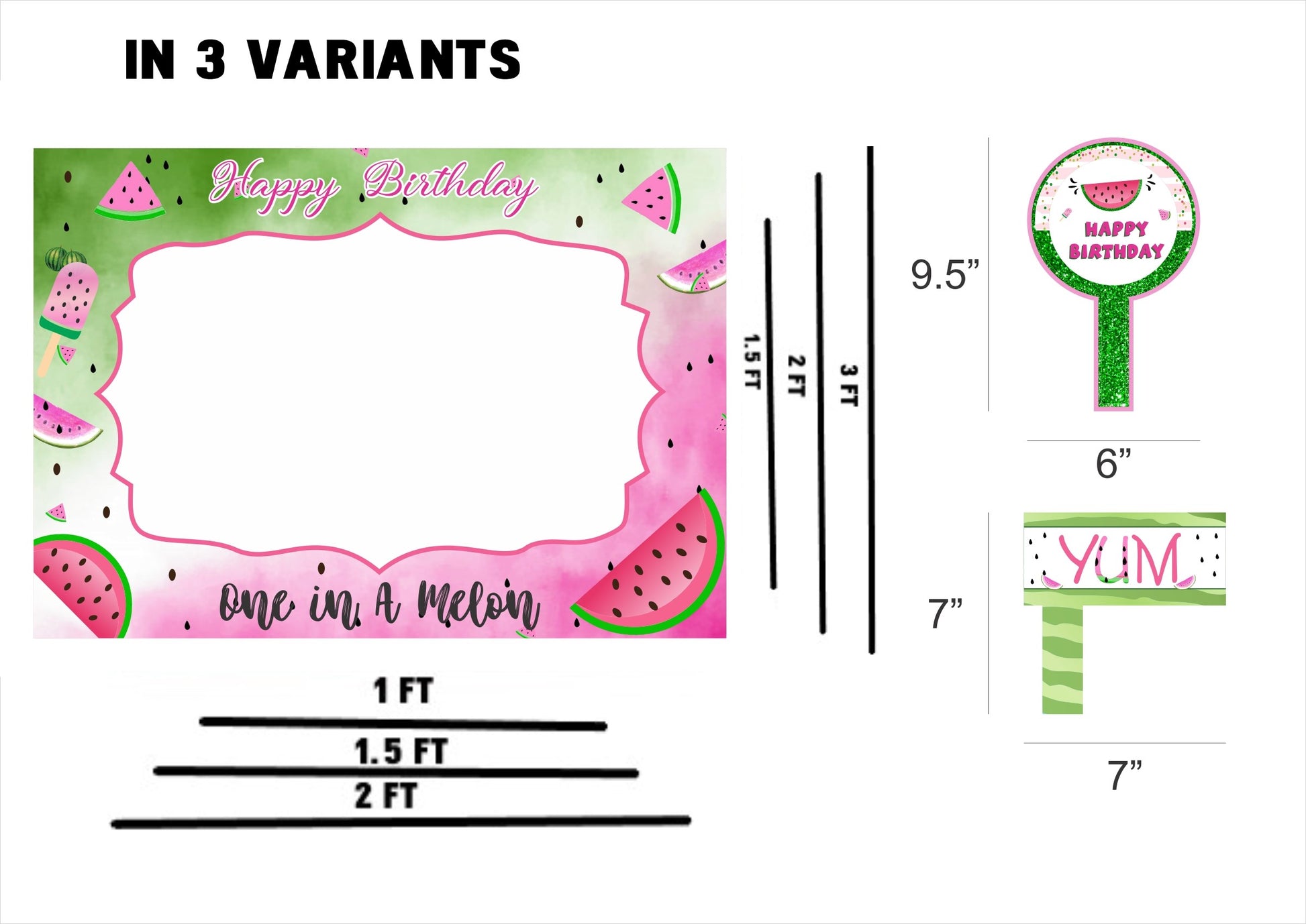 One In A Melon Theme Birthday Party Selfie Photo Booth Frame & Props
