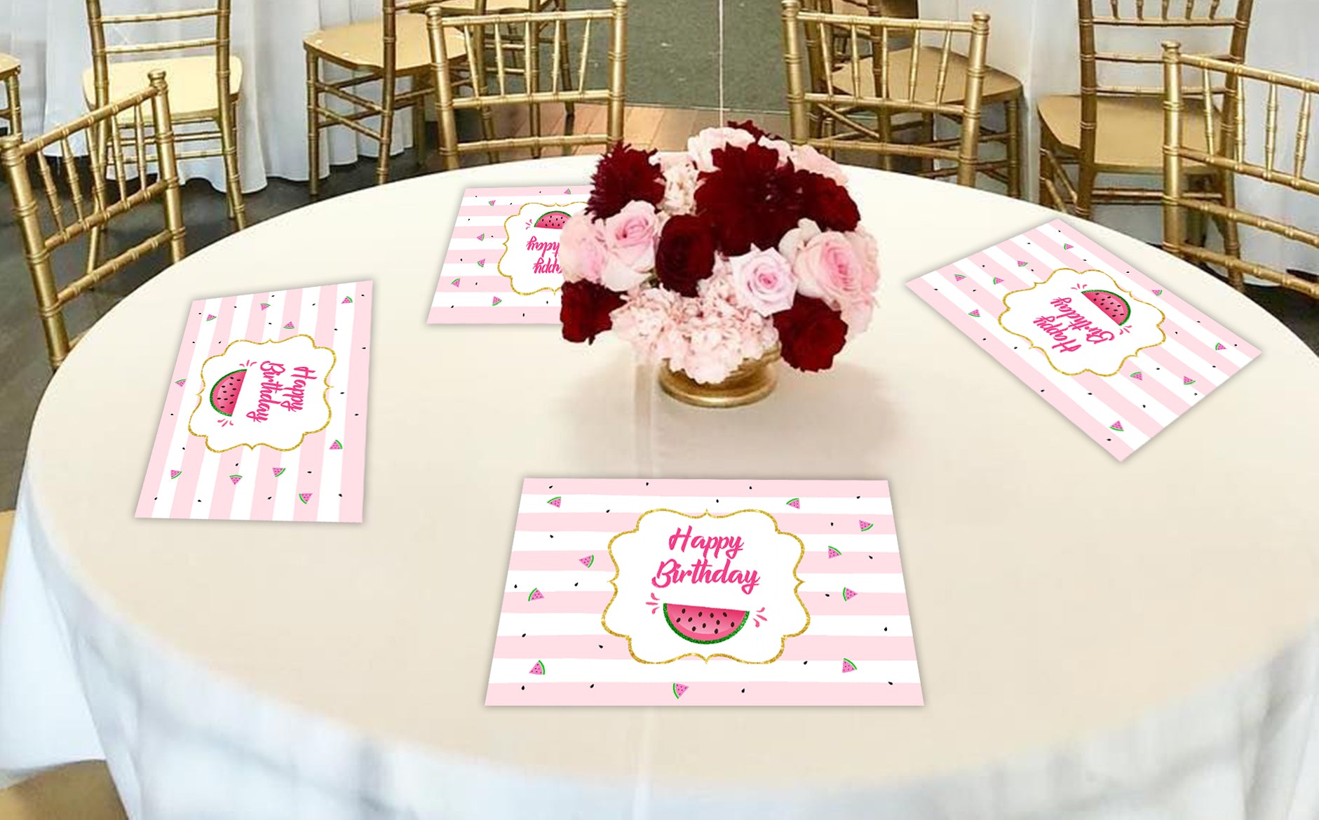 One In A Melon theme birthday party table mats will delight all of your guests. Add these themed table mats to make a remarkable table setting.