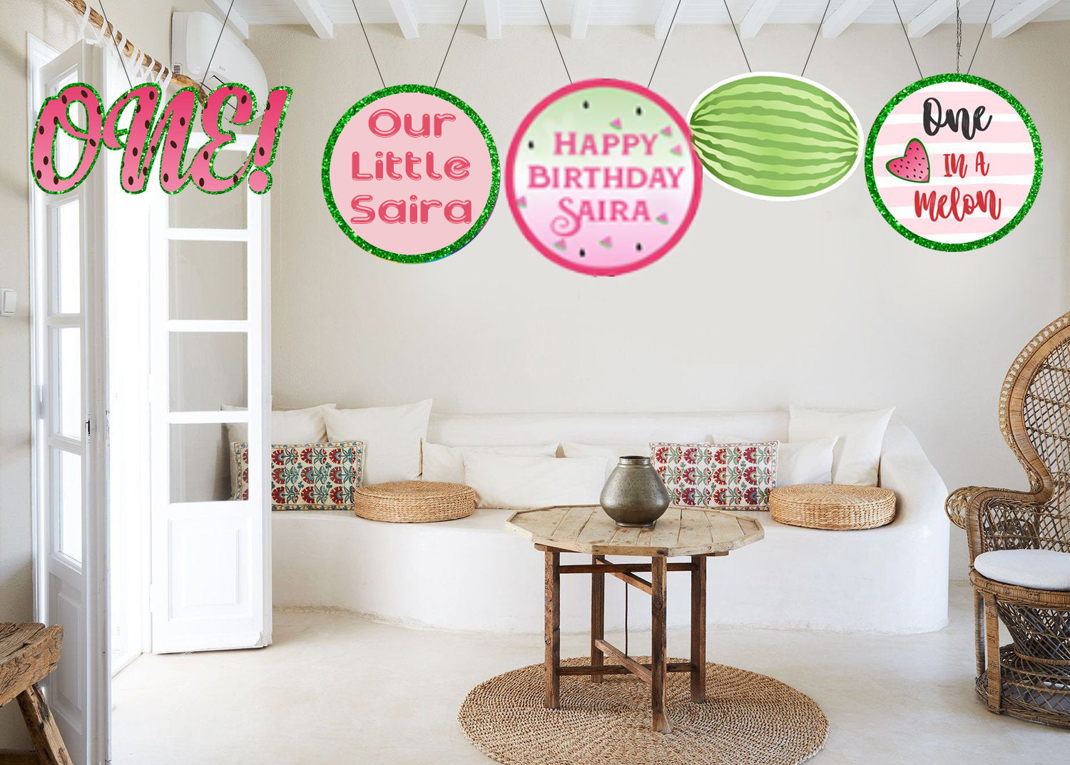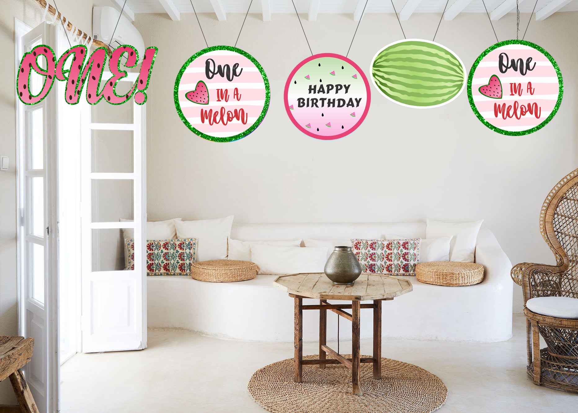 One In A Melon Theme hangings will add a beautiful touch to your kid's birthday party.