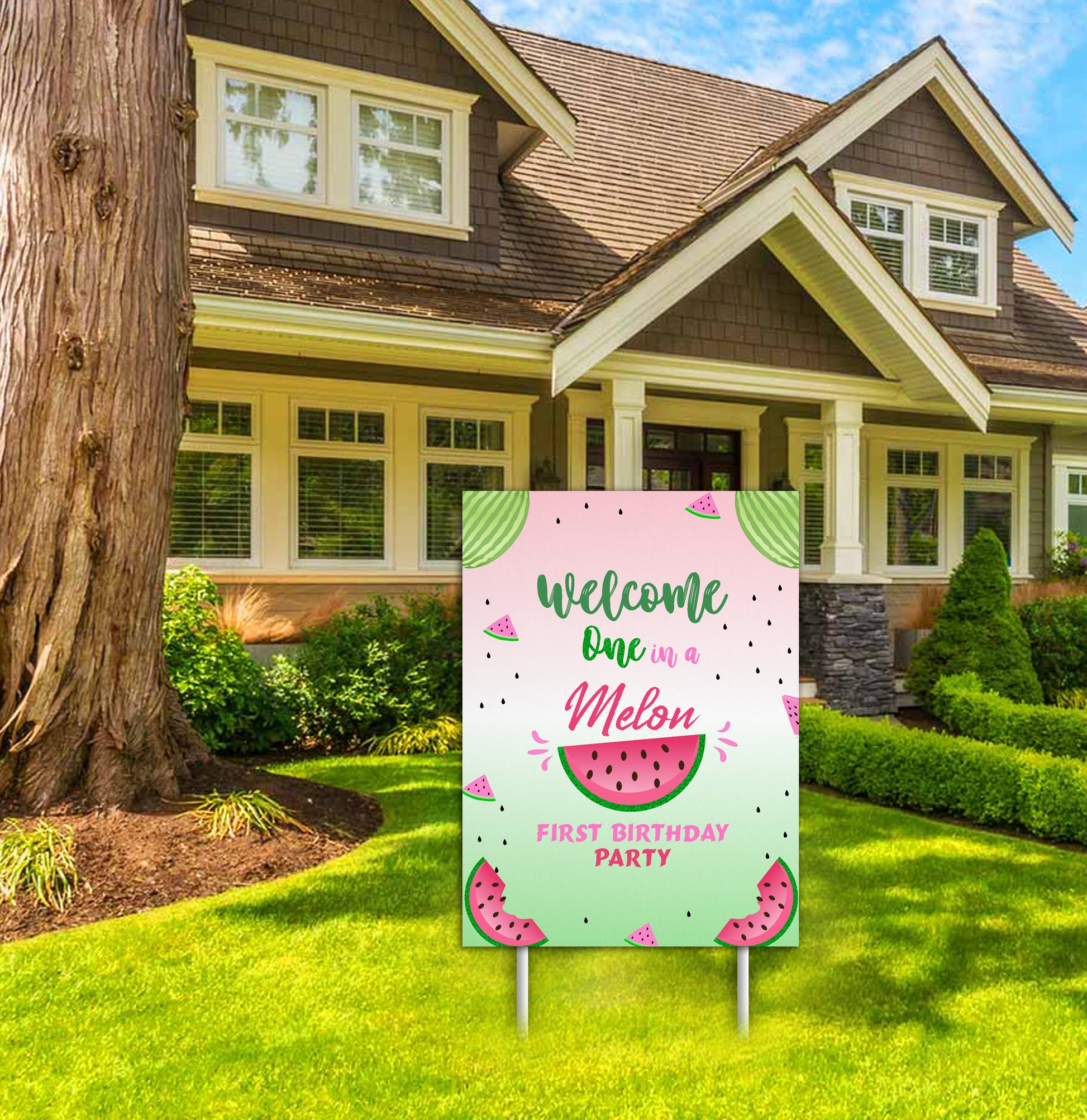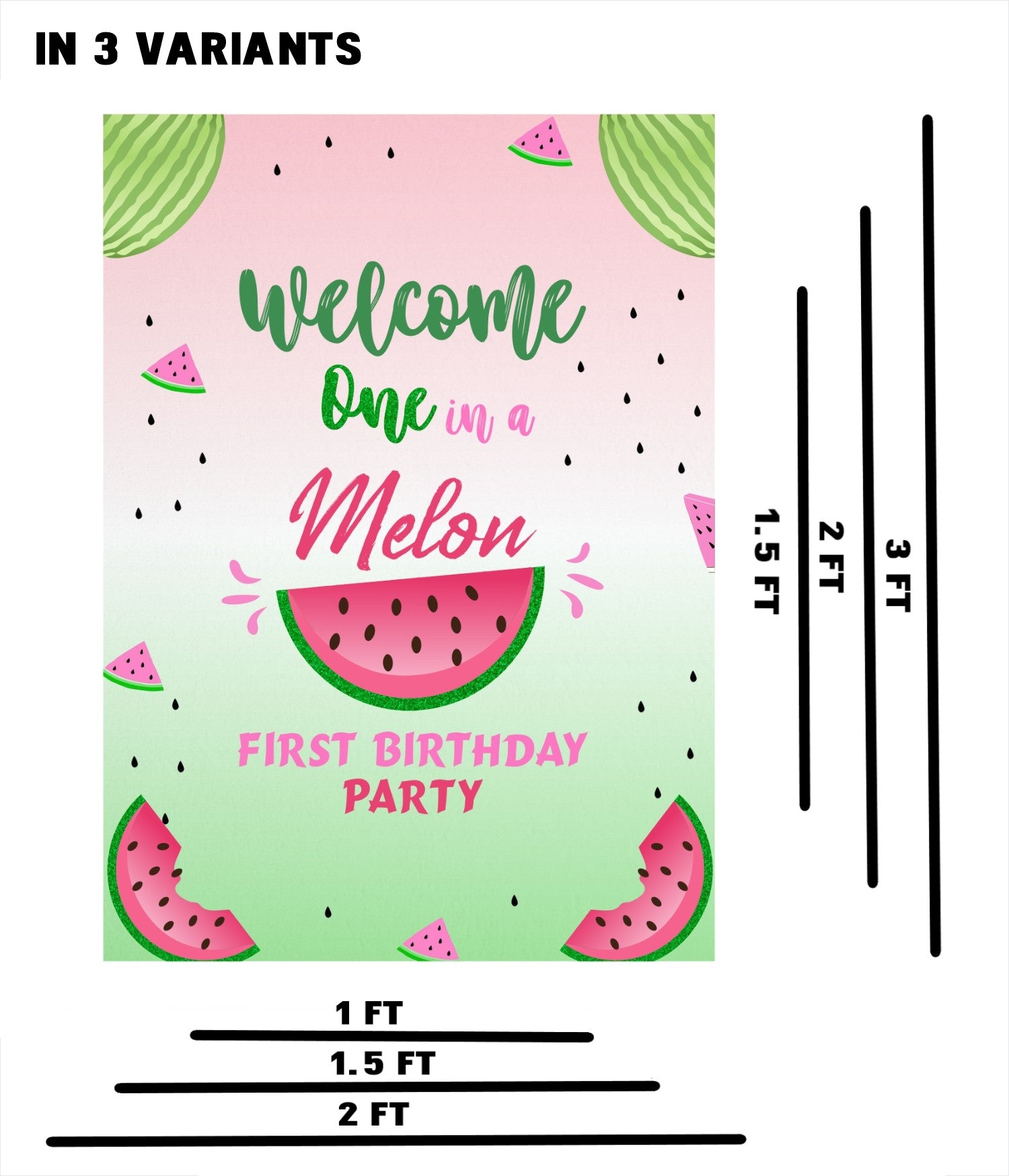- Material: - One In A Melon theme welcome signboard is made of high-quality vinyl print pasted on a 3mm sun board.
