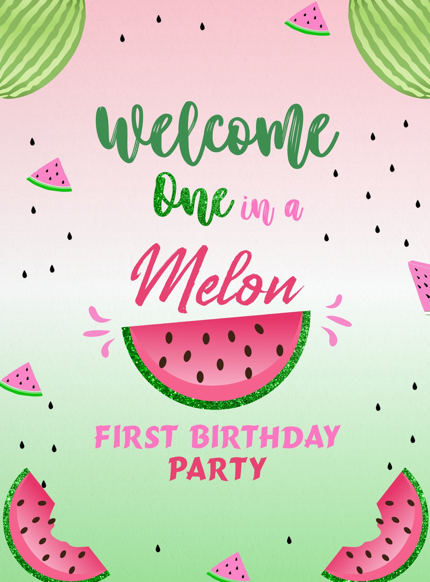 The One In A Melon theme Welcome board sign is ideal for any home location or outside space. Welcome your friends and family members with a stunning welcome birthday party board.