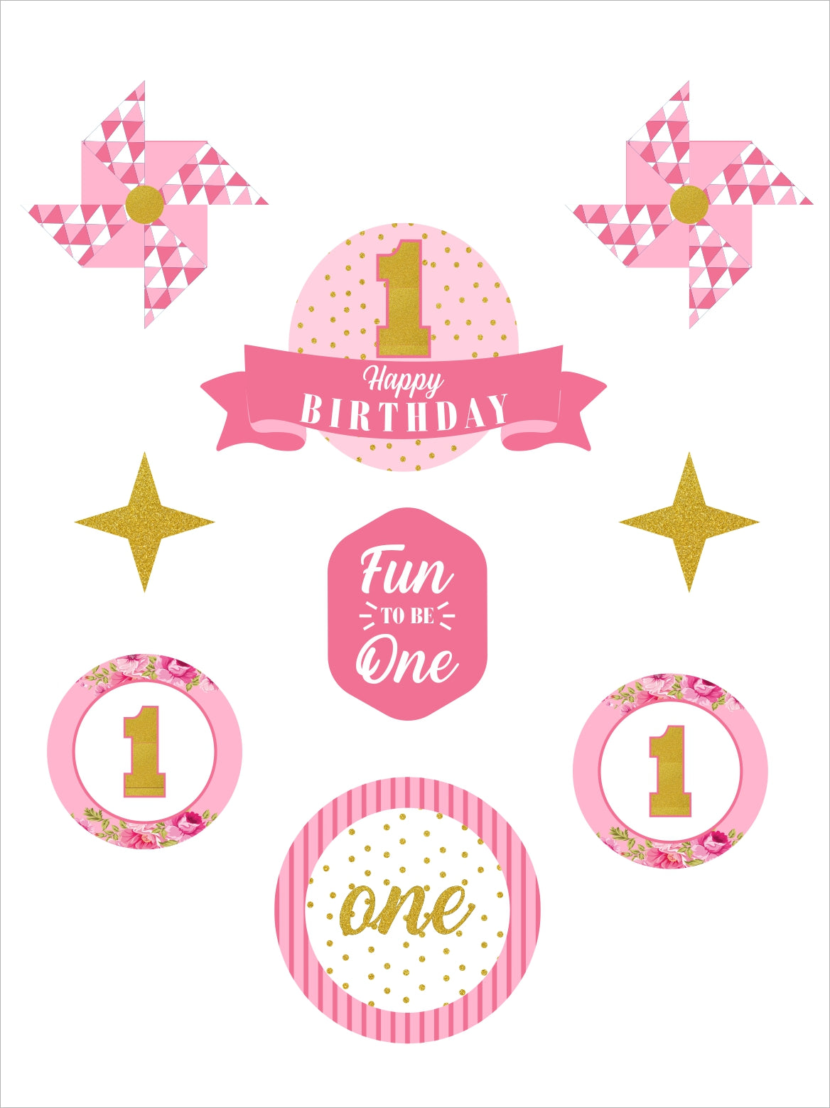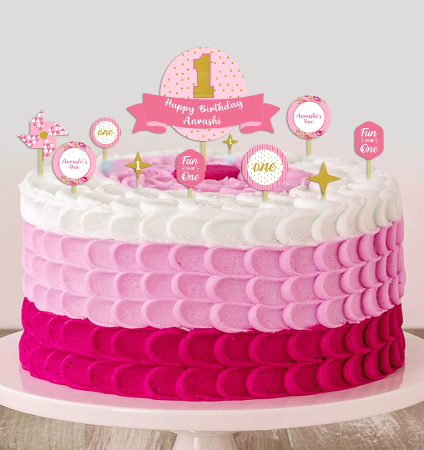- How to use: - Include First Birthday Theme Cake toppers to your treat table to make an extraordinary theme cake show. Style the big cake topper with the two huge picks and add one small selection to each of the ten cut-out shapes to finish the cake embellishment.