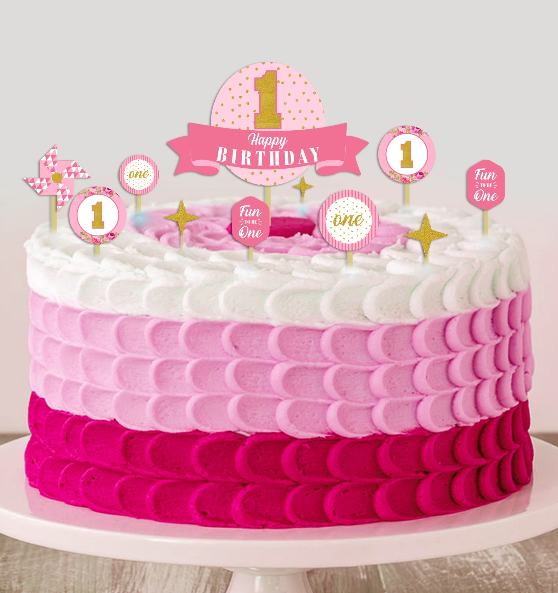 One is Fun First Birthday Party Cake Topper Kit for Decoration