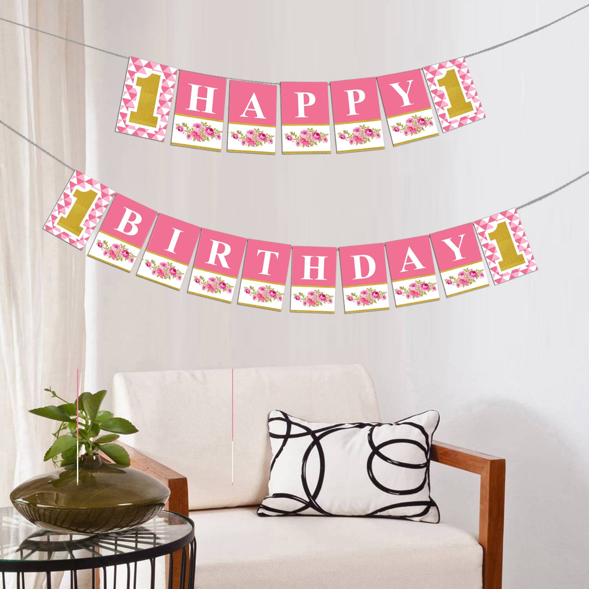 Material- First Birthday Party Banner is expertly imprinted on solid card stock paper. The paper card and string come separately; simple DIY is needed.