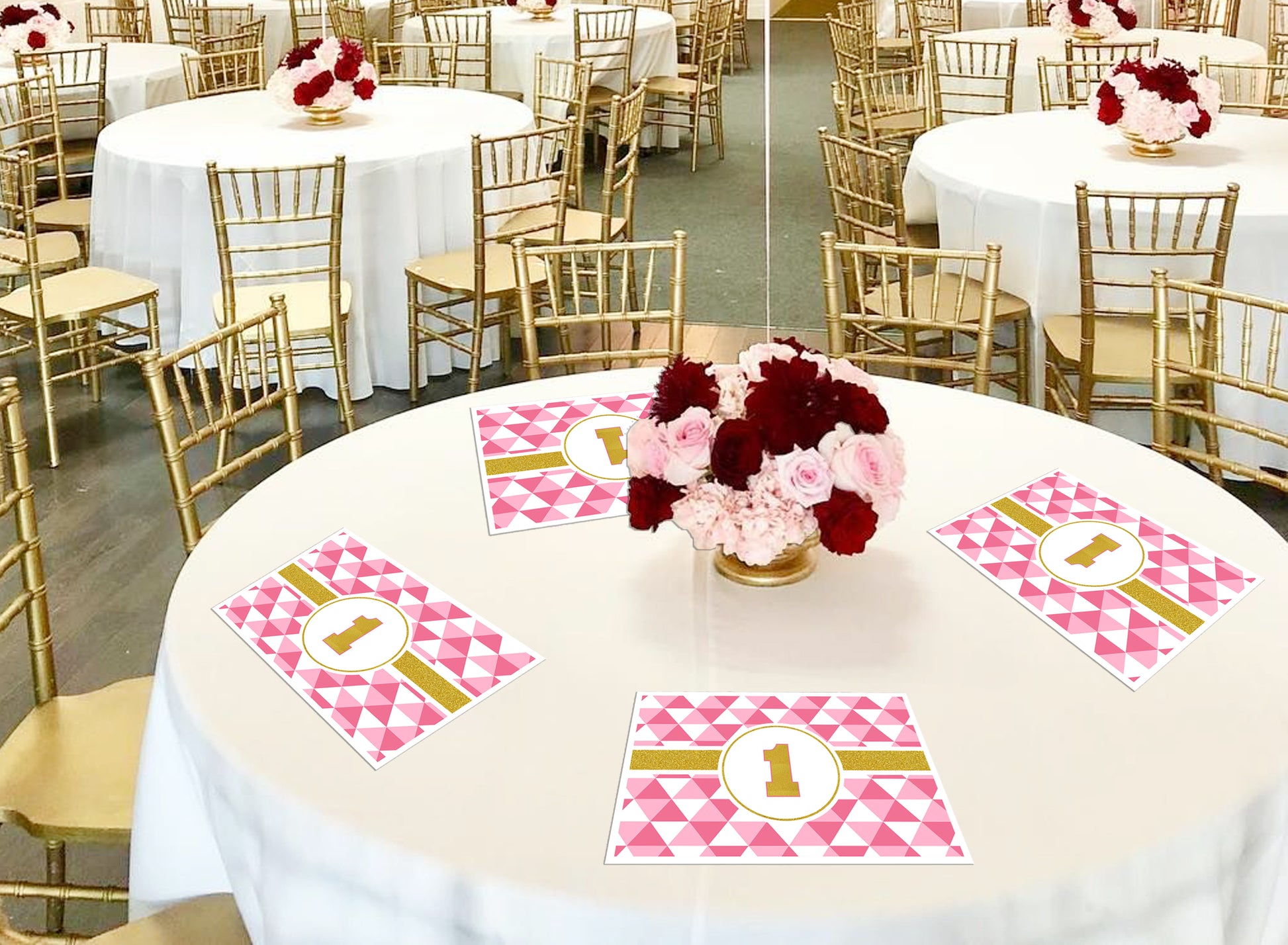 - First Birthday theme birthday party table mats will delight all of your guests. Add these themed table mats to make a remarkable table setting.